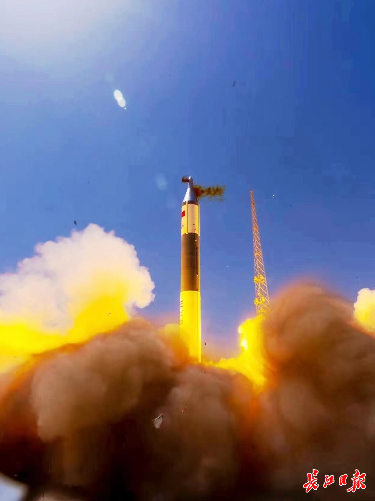 时间来到12时15分,一股赤橘色烈焰瞬间迸出,快舟十一号固体运载火箭托举“武汉一号”卫星,一路呼啸直上云霄。耳边,欢呼声震耳欲聋,大伙儿非常振奋。