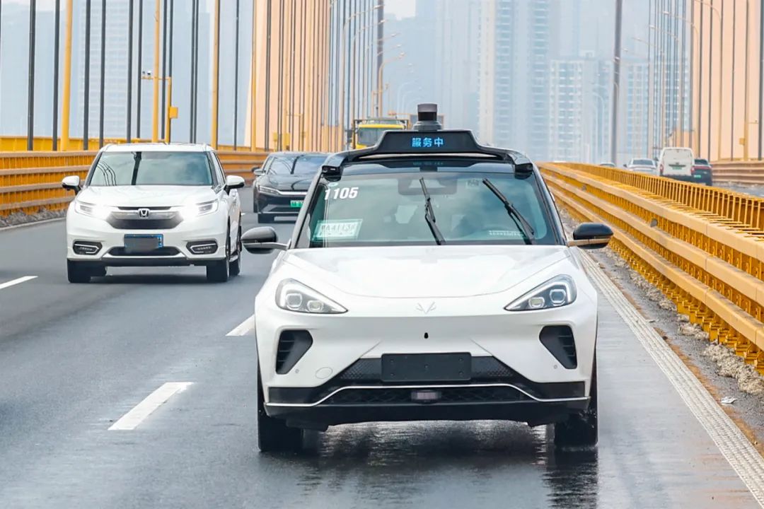2024年2月,一辆无人自动驾驶汽车在武汉杨泗港长江大桥桥面上行驶。(湖北日报记者 倪娜 摄)
