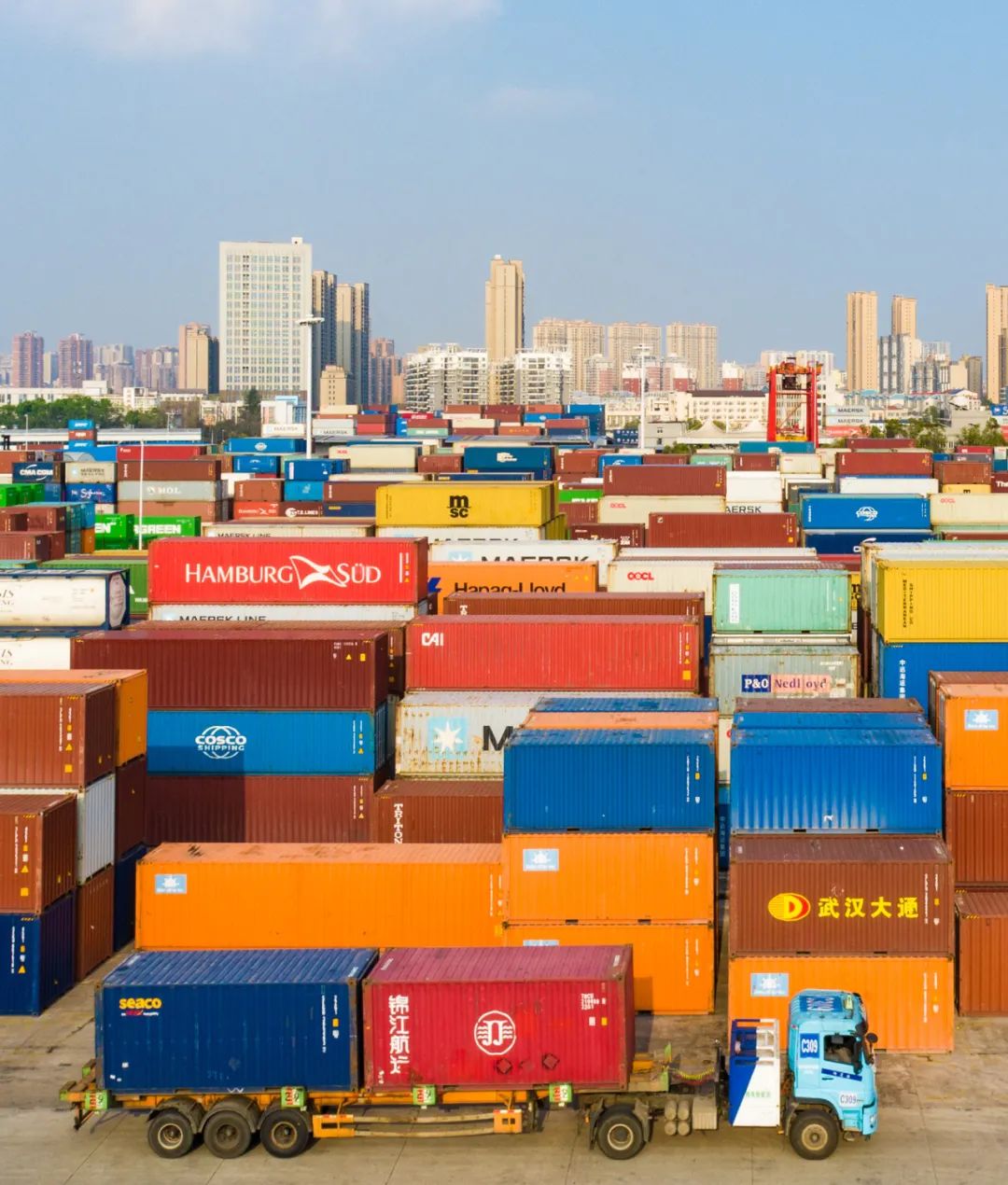 武汉阳逻港一片繁忙。今年一季度武汉港口岸出入境船舶同比增长150%。 (湖北日报全媒记者 任勇 摄)