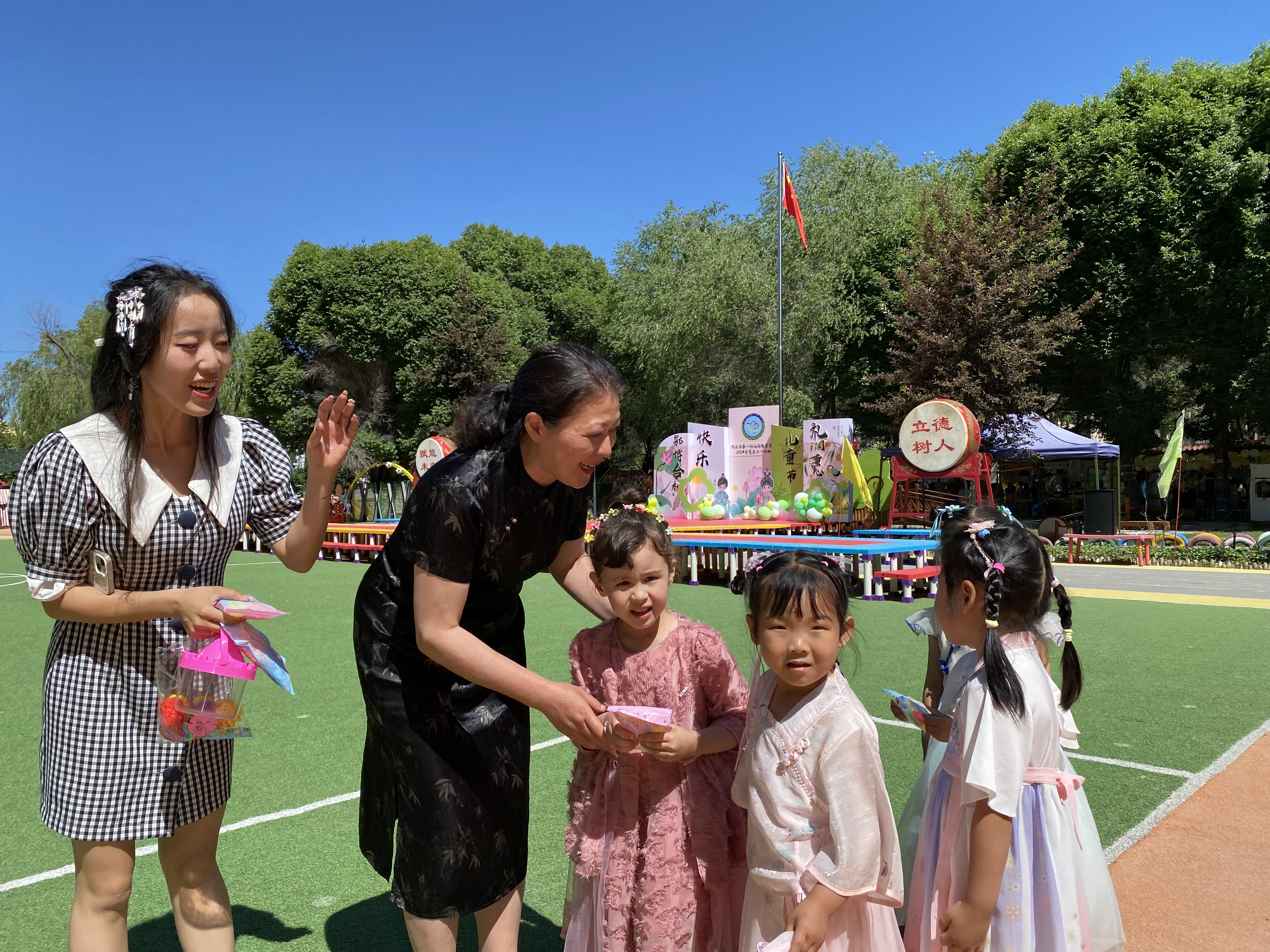 不到一个小时的文艺表演结束后,孩子们开始“礼润‘童’心”游园活动。家长代表和老师们做的各类饮食:手抓饭、热奶宝、冰粉等等,吸引孩子们纷纷品尝。另外还设置有跳蚤市场、游戏区、电影区嘉年华等等。