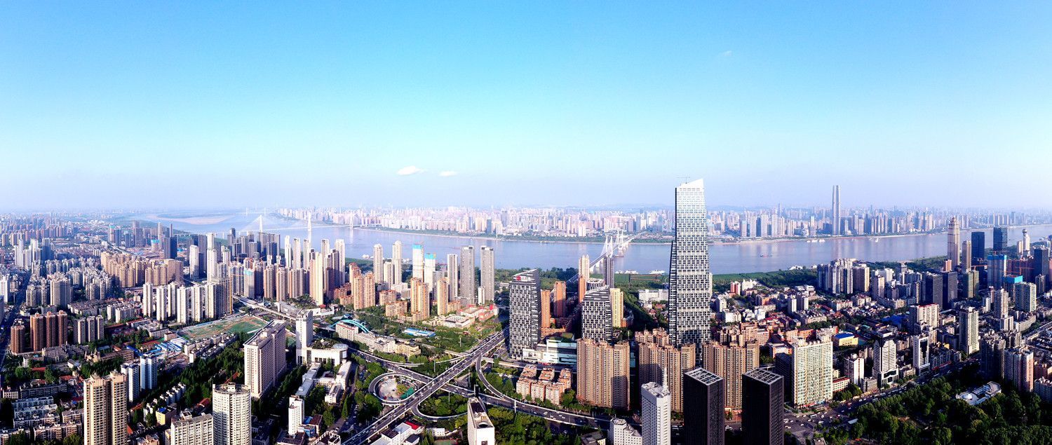 在汉口江滩500米高空俯瞰,长江两岸高楼大厦鳞次栉比,东湖、沙湖尽收眼底,呈现一幅现代大都市画卷。 刘斌 摄