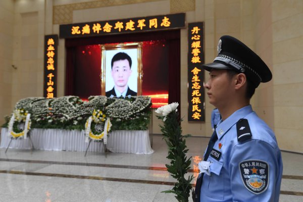 民警邱建军追悼会现场。 长江日报记者史伟 摄(资料图)