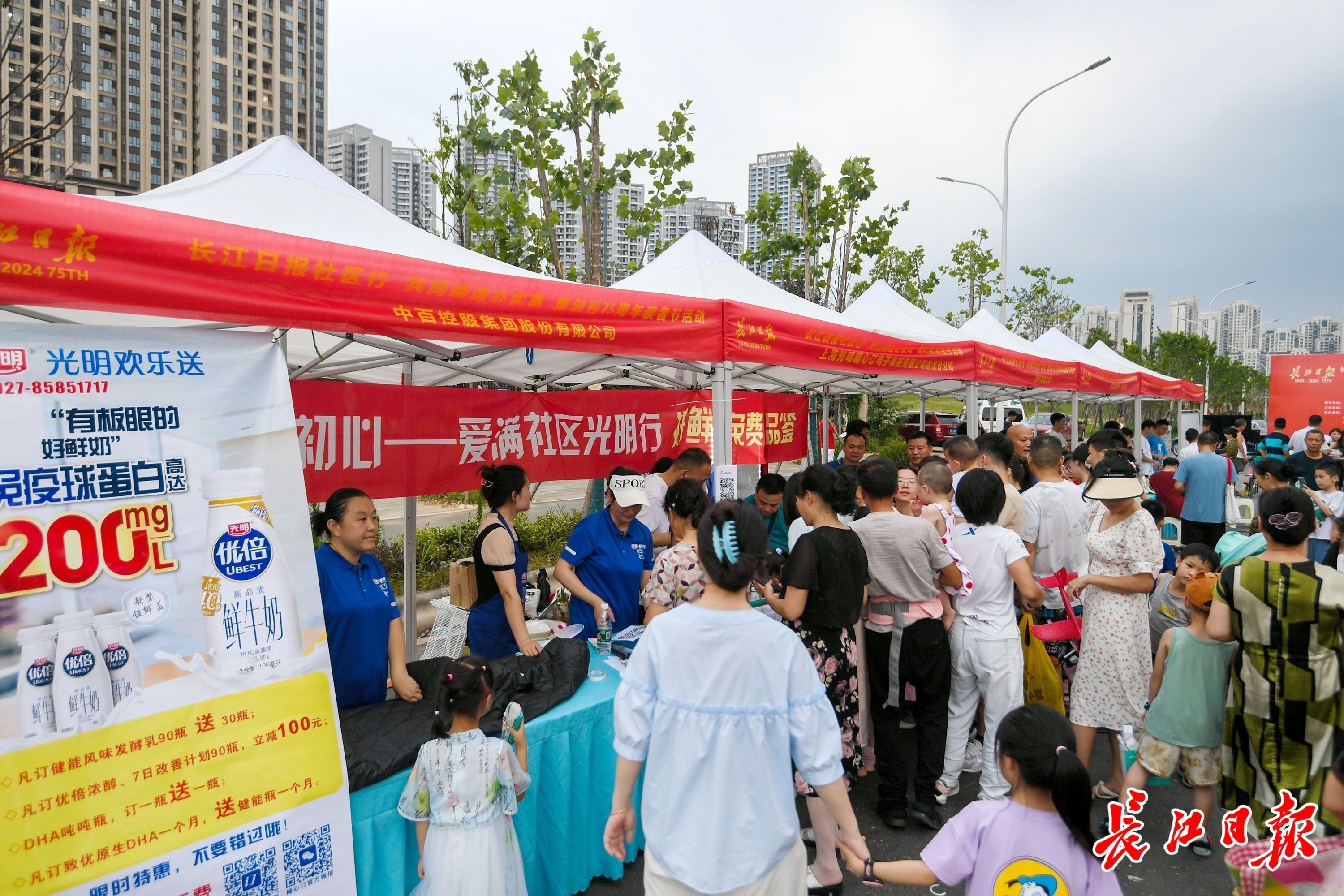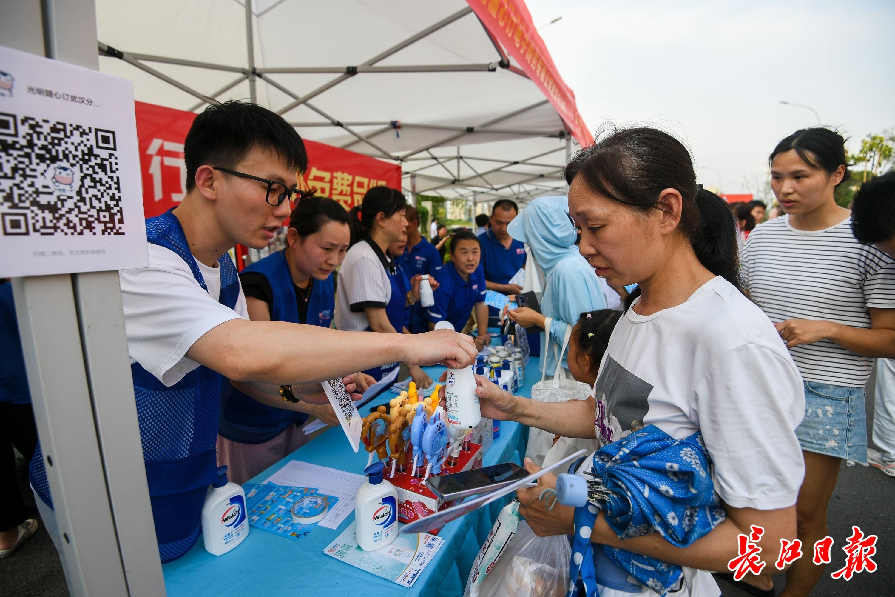 领牛奶、送冰棍……6月15日傍晚,“长江日报社区行 共同缔造办实事”暨长江日报创刊75周年读者节系列活动走进武汉经开区沌阳街道官士墩社区,开启夜场模式,清凉福利不断。活动现场,中百集团、光明乳业等爱心企业在现场派发各类消暑福利;长江日报联合相关职能部门现场办公,为居民解难答疑。