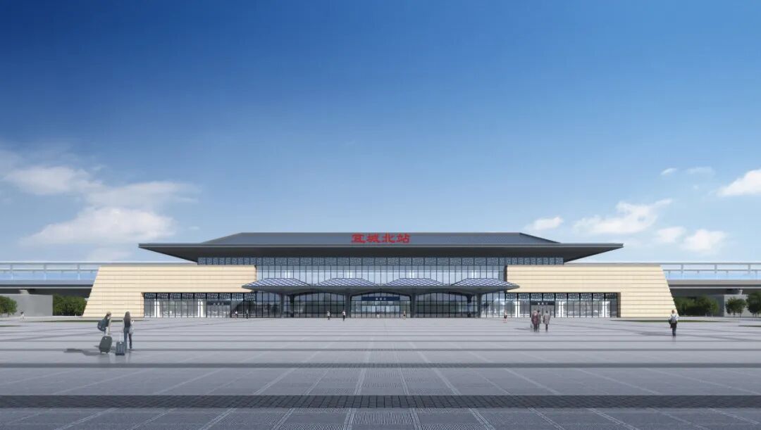 宜城北站位于宜城市区西北部铁湖村,站场规模2台4线,站房面积约6000平方米,为线侧下式站型。