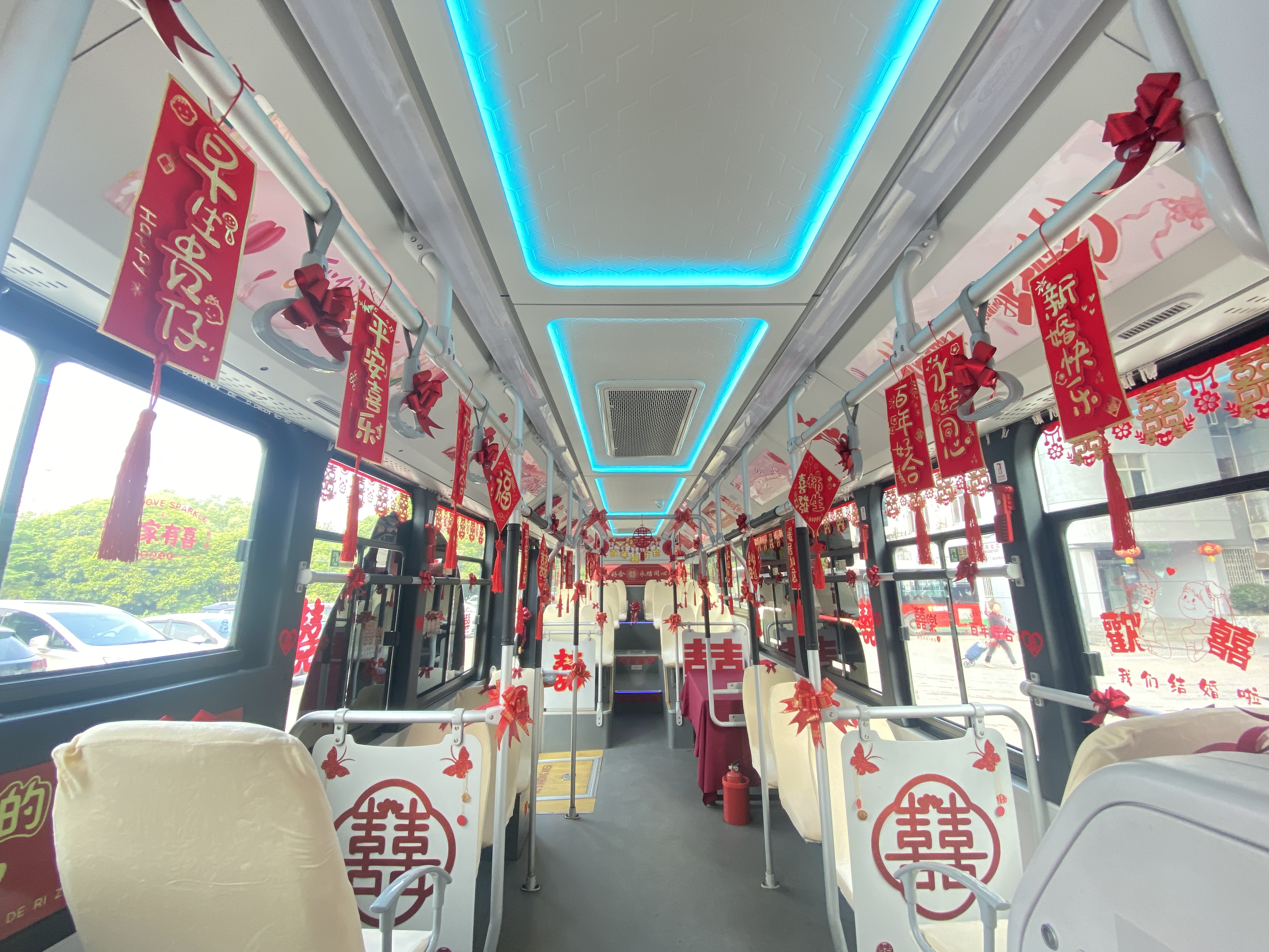 “幸福号”公交婚车由公交二公司运营,相关负责人介绍,去年,公司为倡导绿色环保理念、营造幸福安全的交通出行环境而推出这一便民服务,不仅满足了新人对浪漫和创意的需求,也倡导了移风易俗、婚事简办的良好社会风尚。作为一种新型出行方式,为了服务好新人,公司特意挑选了驾驶经验丰富的司机来驾驶婚车,纯电动公交车也展示出节能、环保特色,去年11月“首秀”后,目前已接单发车近30例,服务的都是“95后”新人。