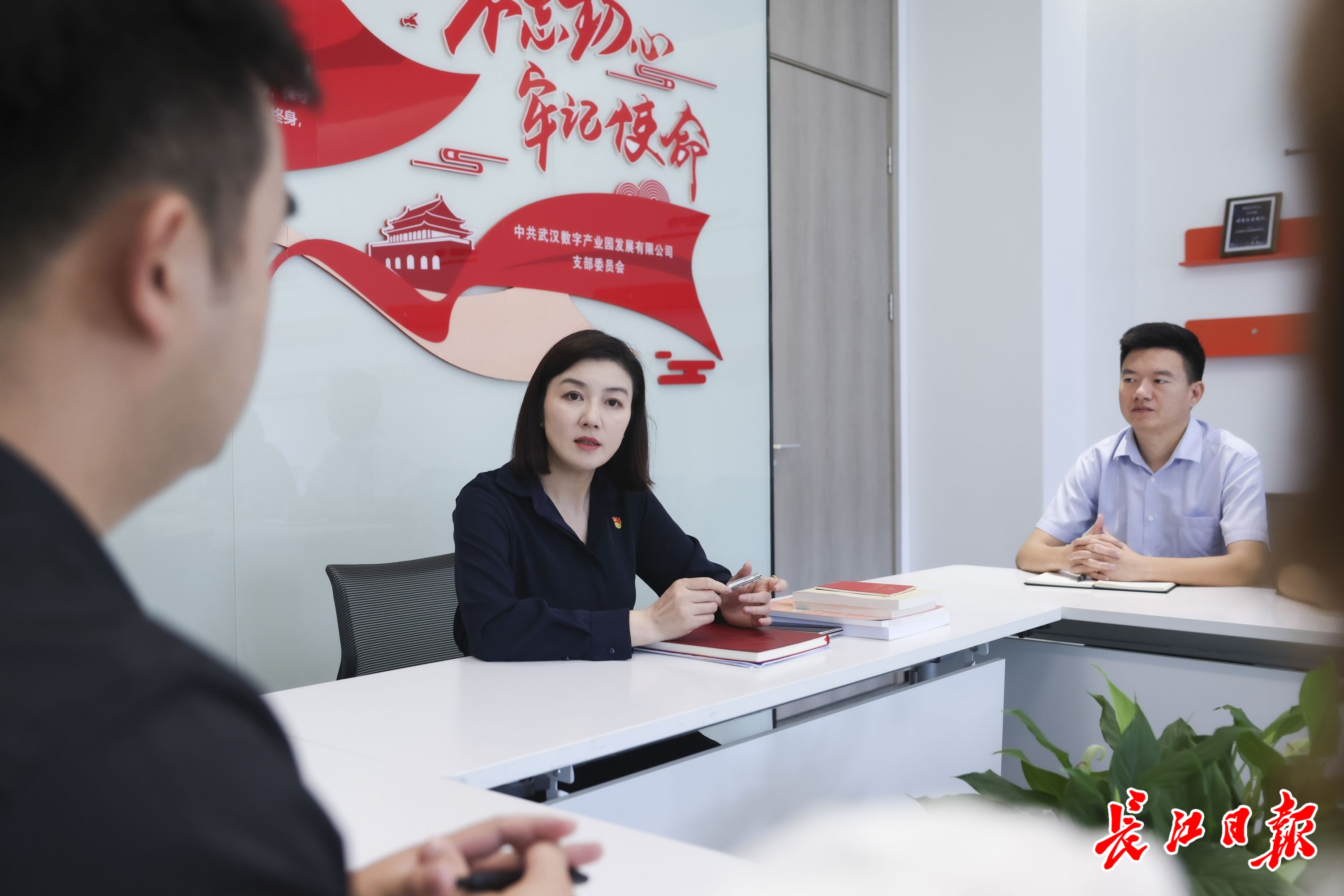 中电光谷数字产业园党建会议室,武汉数字产业园发展有限公司党支部书记黄黎,为园区内各公司入党积极分子代表讲党课。长江日报记者 胡冬冬 摄