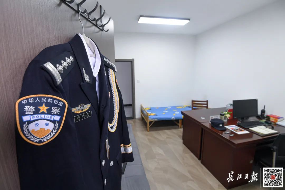 邱建军的办公室里,警礼服挂在门后。记者史伟 通讯员应后威 摄
