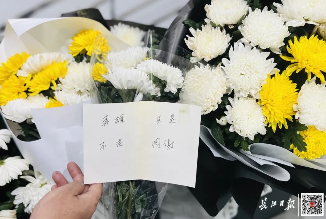 群众自发向光荣牺牲的邱建军献花。记者陈勇摄
