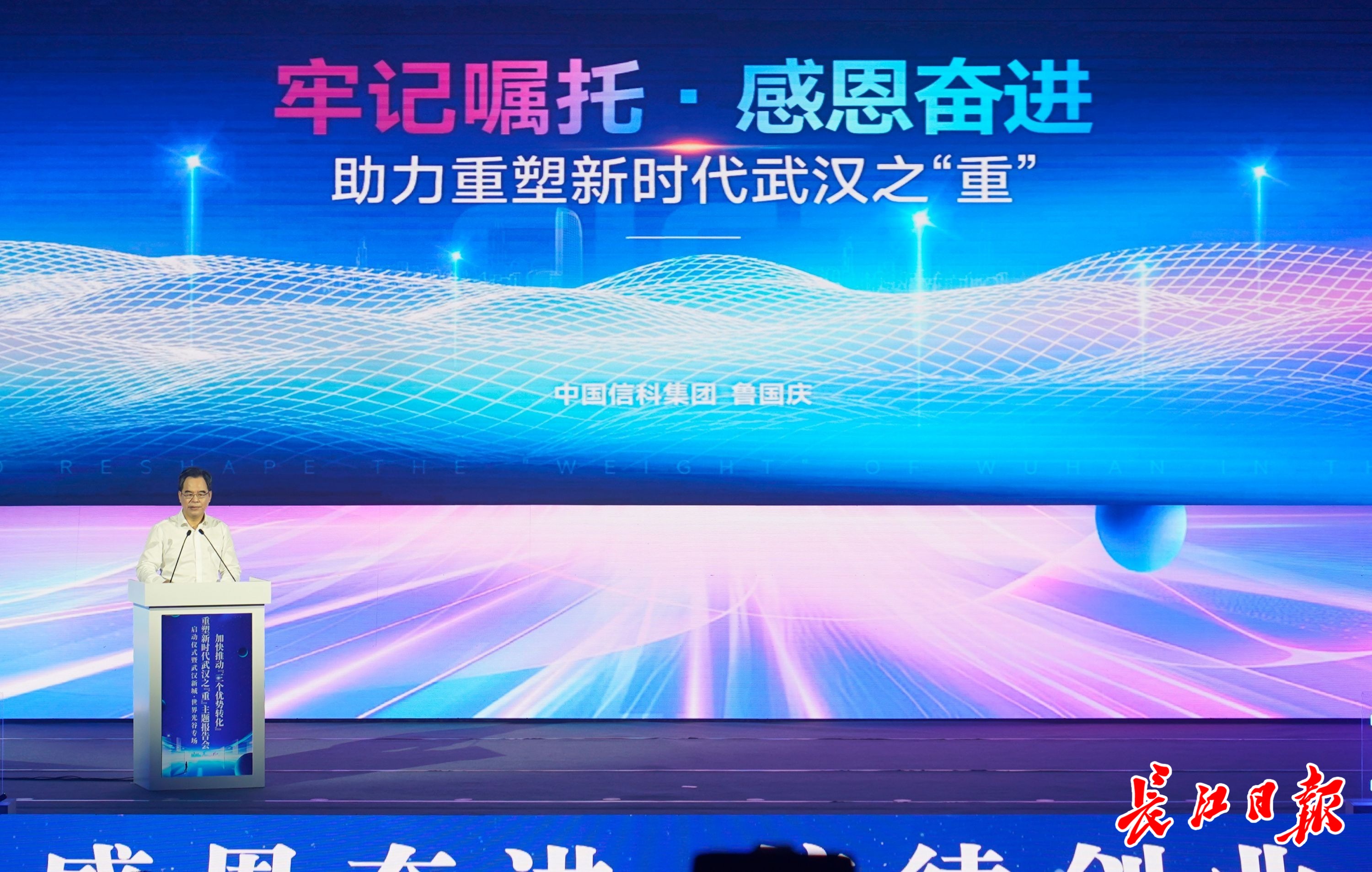 6月27日,“加快推动‘三个优势转化’,重塑新时代武汉之‘重’”主题报告会之“武汉新城·世界光谷”专场上,中国信科集团党委书记、董事长鲁国庆作报告。记者彭年 摄