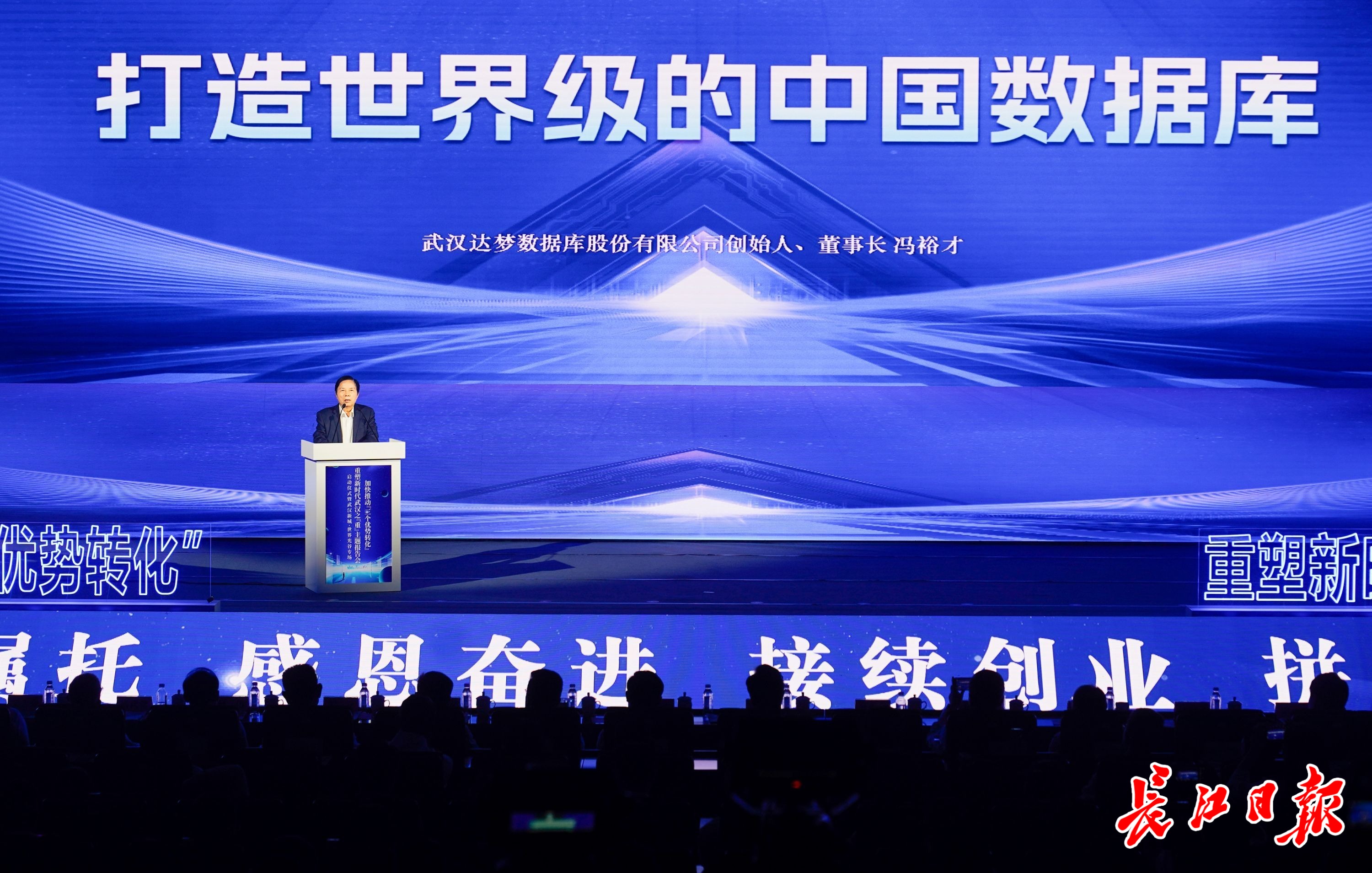 6月27日,“加快推动‘三个优势转化’,重塑新时代武汉之‘重’”主题报告会之“武汉新城·世界光谷”专场上,武汉达梦数据库股份有限公司创始人、董事长冯裕才作报告。记者彭年 摄