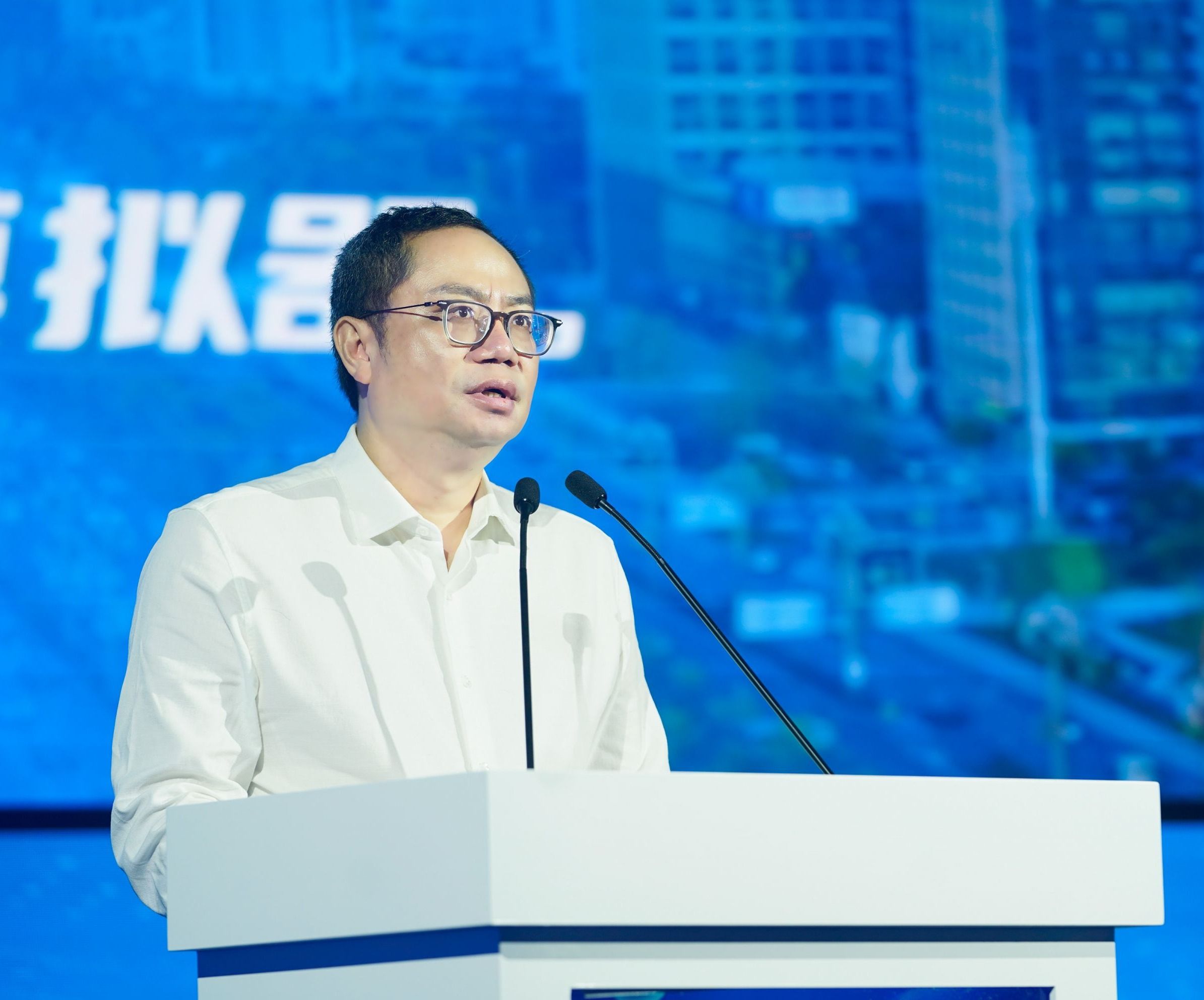 北京大学武汉人工智能研究院执行院长吴志强在报告会现场发言。