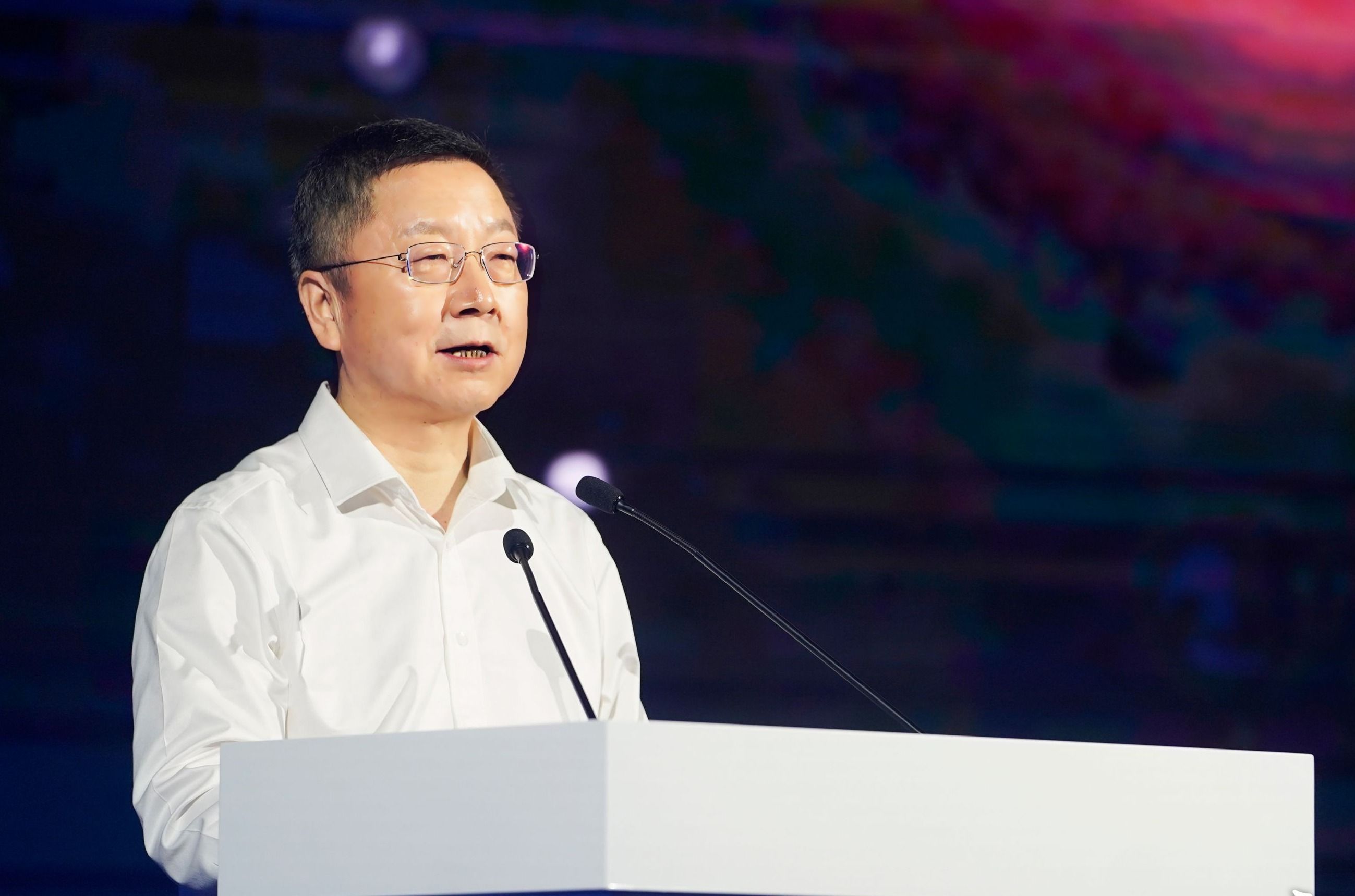 中国信科集团党委书记、董事长鲁国庆在报告会现场发言。