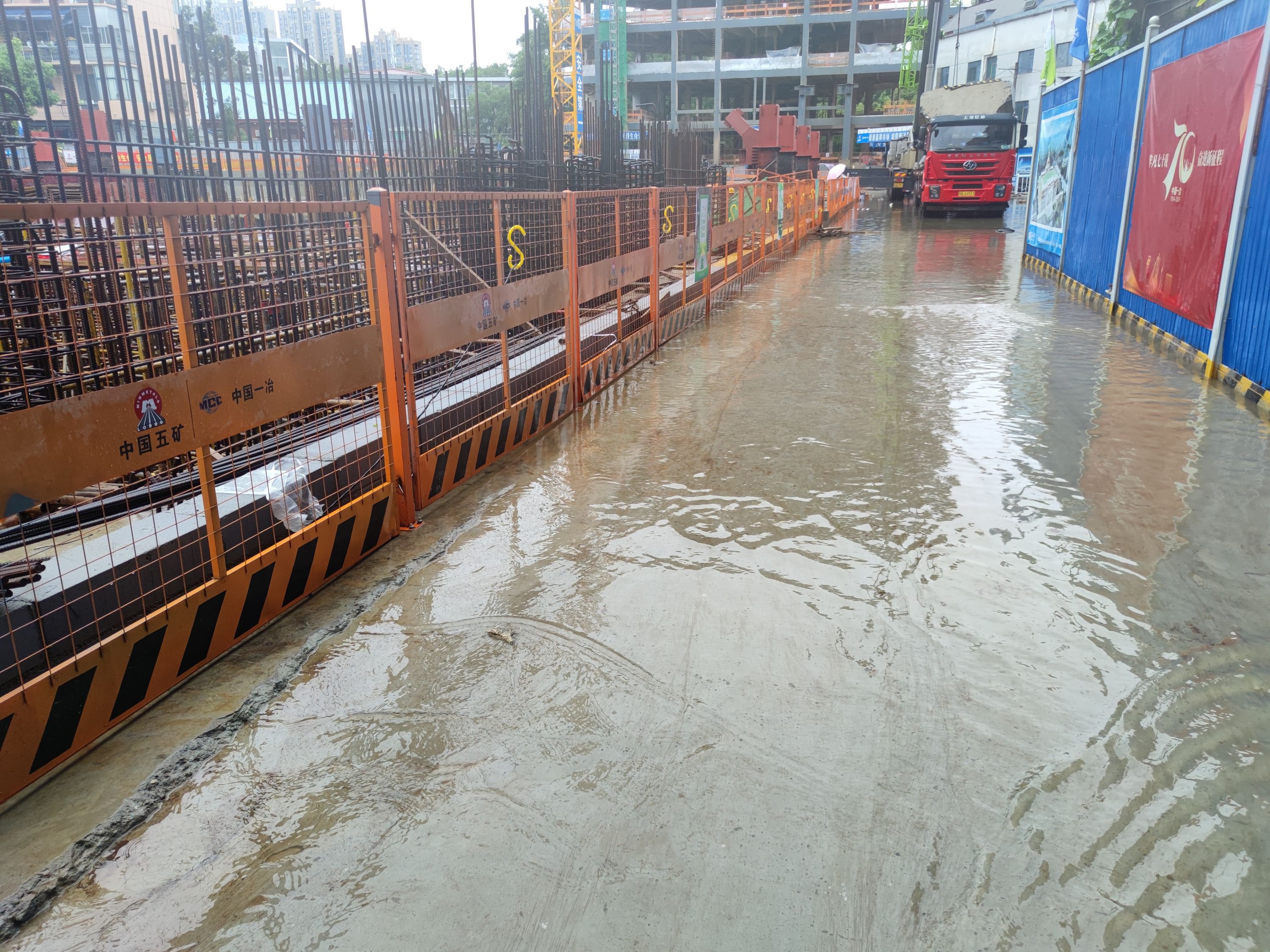 湖北省退役军人服务中心建设项目防汛现场。通讯员孙莎 摄