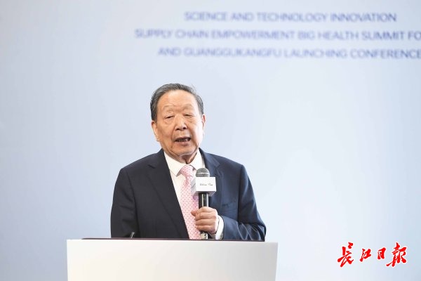 6月28日,刚刚获得国家最高科学技术奖的两院院士李德仁教授回到武汉,在科创供应链赋能大健康高峰论坛暨光谷康服启动大会上作主旨讲演。长江日报记者高勇 摄