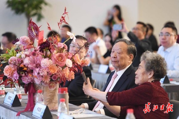 李德仁夫人、武汉大学遥感信息工程学院教授朱宜萱也来到现场。前一天下午,李德仁和夫人刚从北京返回武汉。为了这次分享,李德仁连夜准备了PPT和演讲稿。