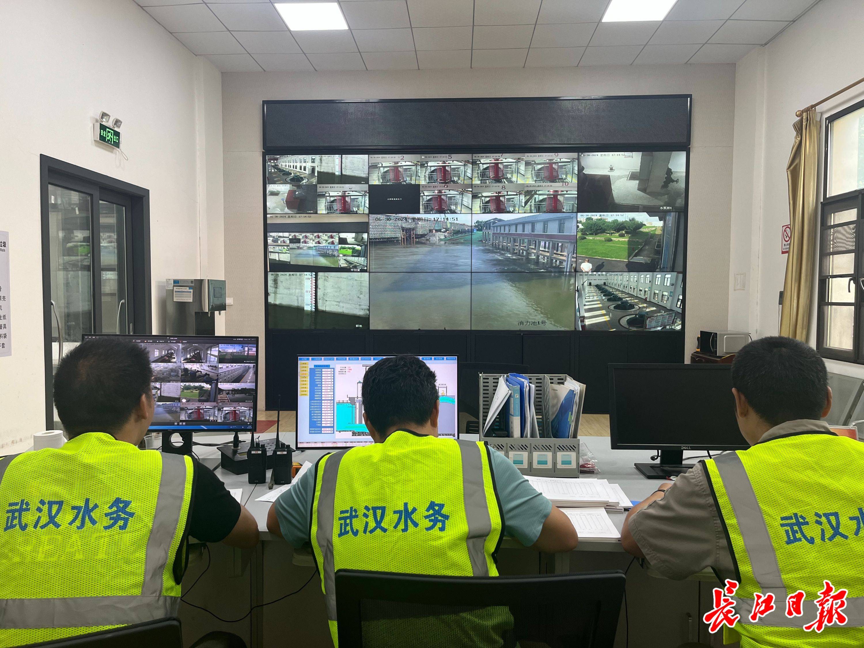 武汉水务人在泵站值守。记者史伟 摄