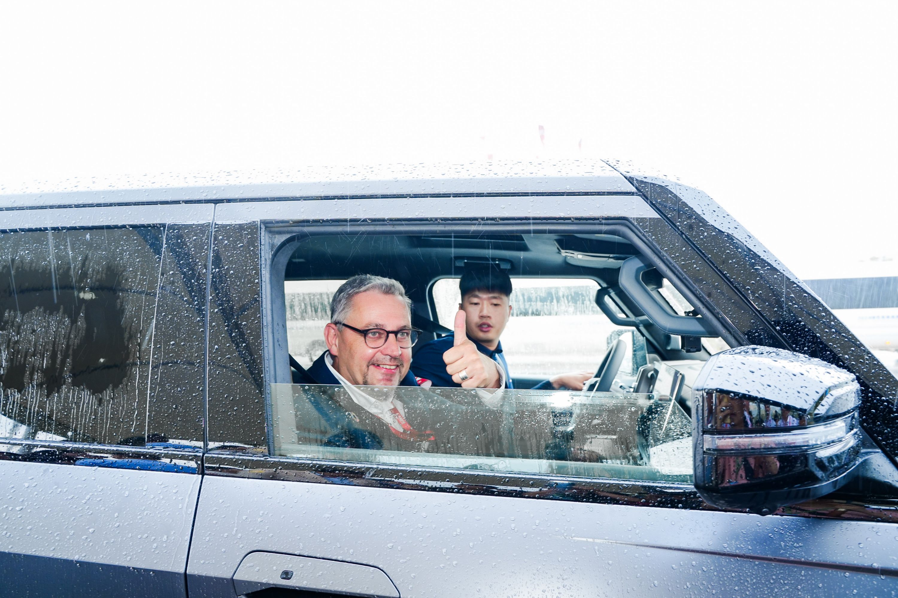 参加“两湖对话”活动的嘉宾试乘猛士917。