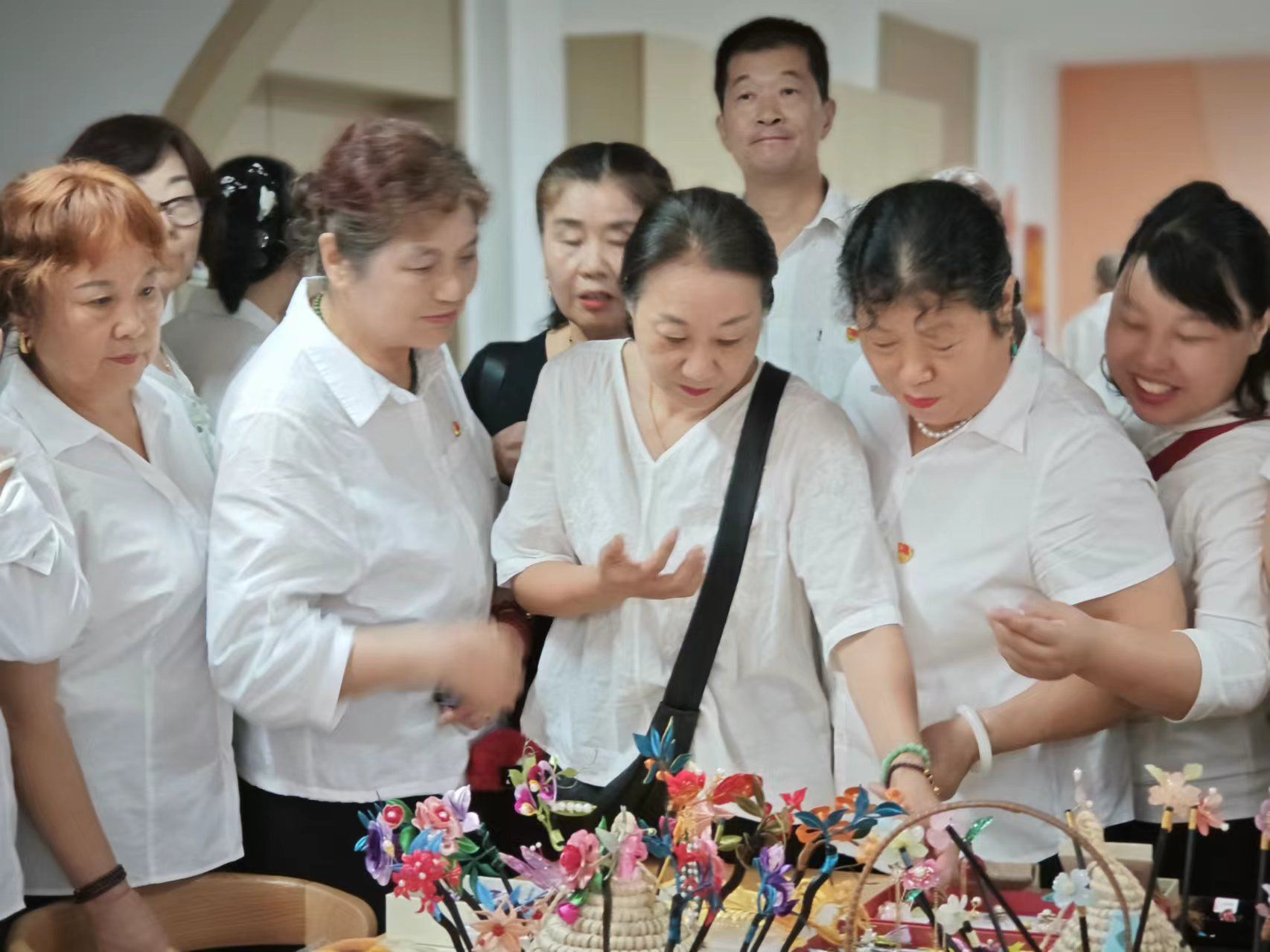 倪燕介绍,社区借助空间改造,引入“社区合伙人”,孵化了一支12人团队的“汉韵星秀”工作坊,为年轻人创业免费提供场所。此外,社区引进湖北第二示范学院师资力量,开设特色课堂。“汉韵星秀”工作坊带头人张景在活动展示汉绣、缠花和盘扣作品,吸引了不少居民围观。