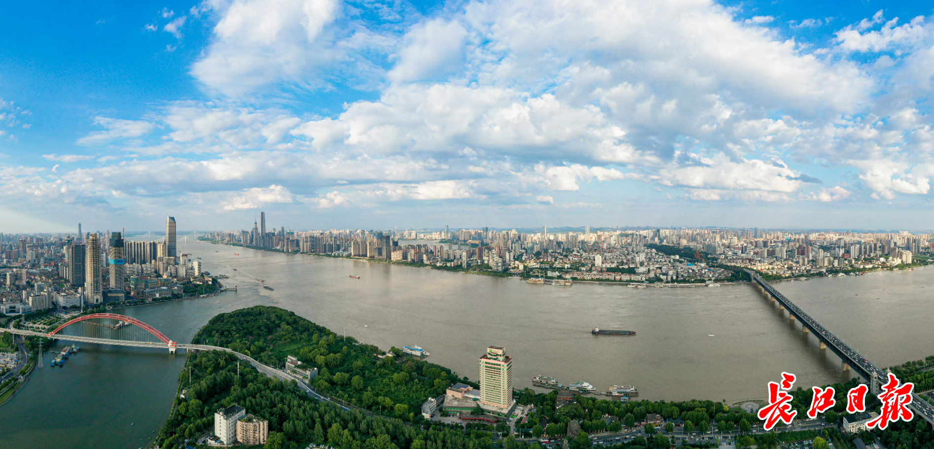 7月6日,江城迎来大晴天,从汉阳龟山上空俯瞰武汉三镇,壮丽如画。记者胡冬冬 航拍