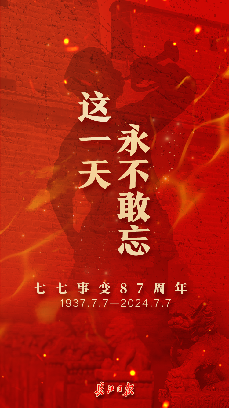 这一天,永不敢忘! ©原创 2024-07-07 07:54 0 1937年7月7日 “七七事变”爆发 这是中国人民不能忘却的日子 铭记历史,珍爱和平 吾辈当自强! (视频︱策划:舒翔宇 剪辑:万心言 整理:实习生蔡梓洋 彭佳欣 海报︱设计:胡欣) 【编辑:王戎飞】