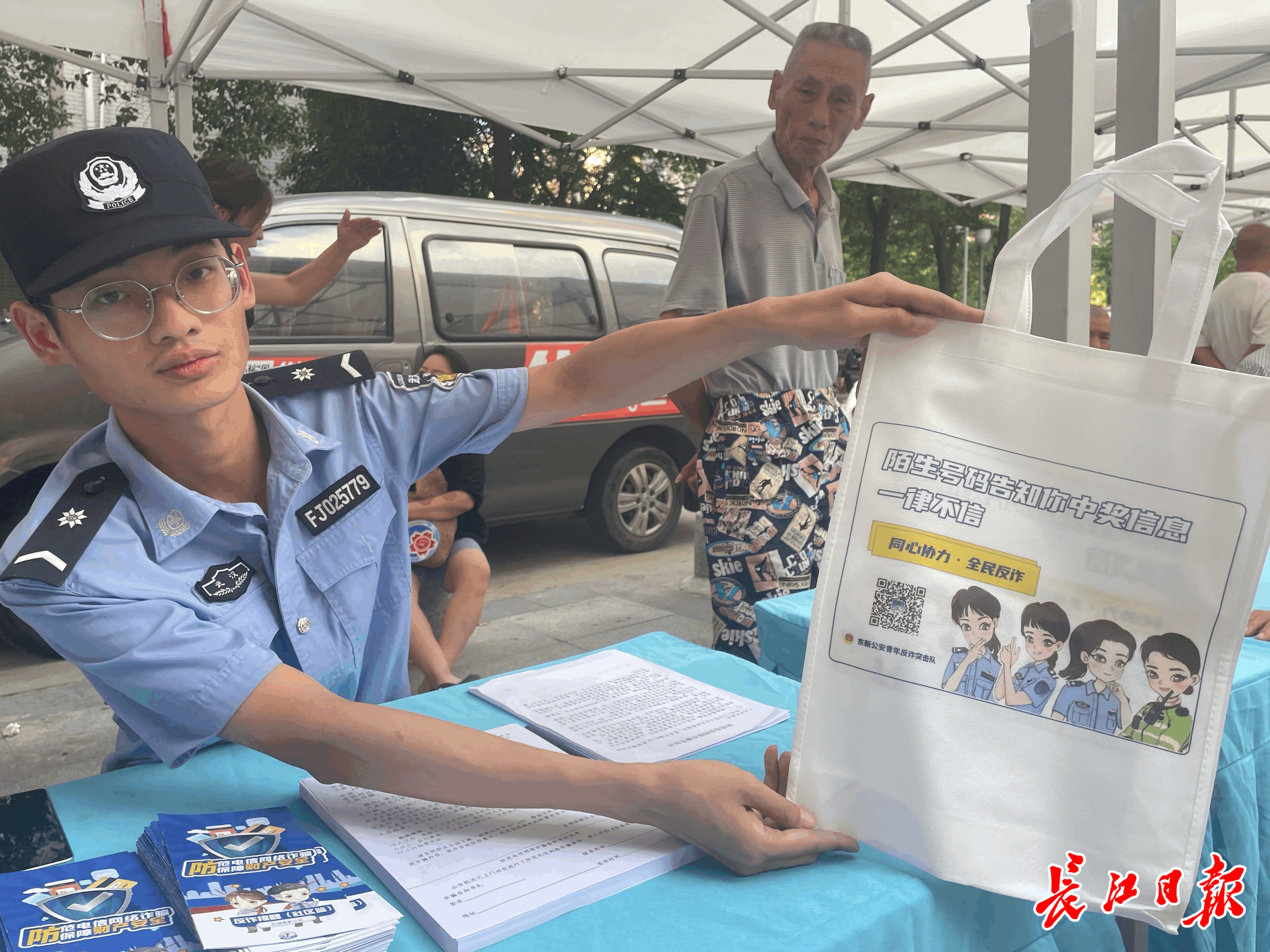 警务人员发放反电诈购物袋。长江日报记者 尹勤兵 摄