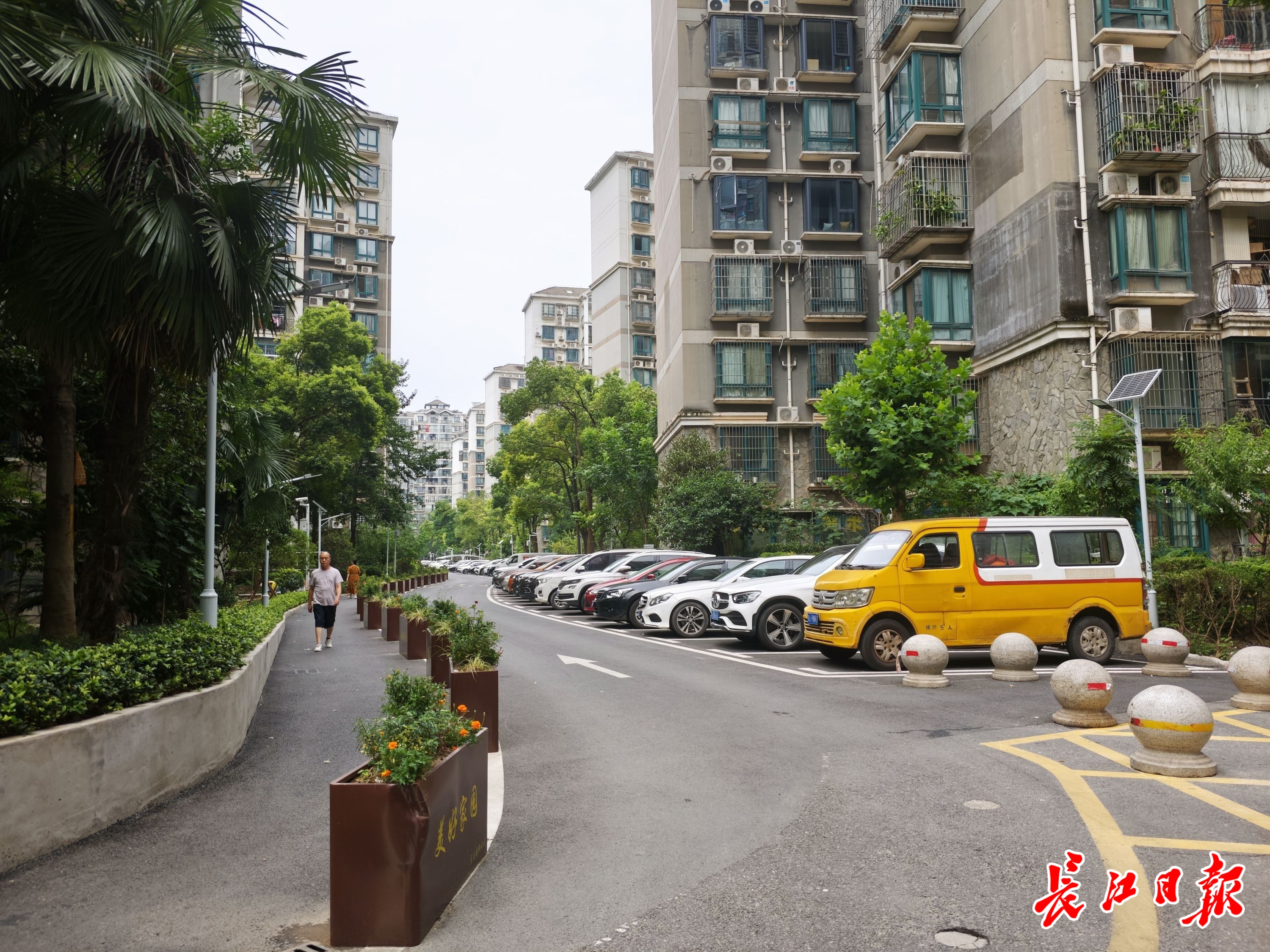 7月10日,长江日报记者走进江岸区二七街道操场社区东立国际小区,看到小区二期一条曾经屡遭投诉的道路秩序井然,两米宽的人行道被单独划出可供三四个人并肩行走,车辆垂直于道路停放,空出消防通道,基本实现了人车分流。