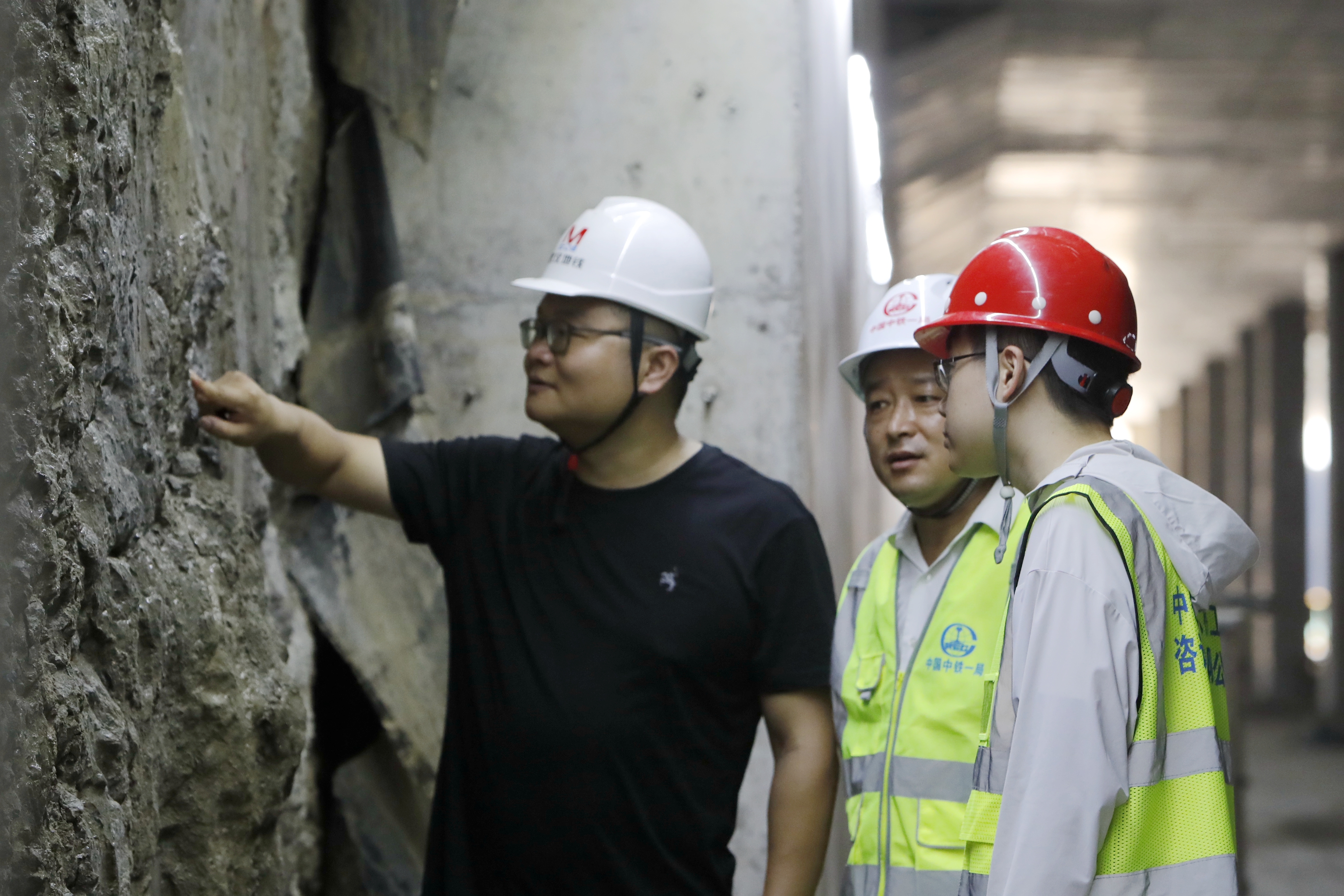 业代、监理、施工人员对下一步出入口施工进行现场讨论。通讯员袁永华 摄