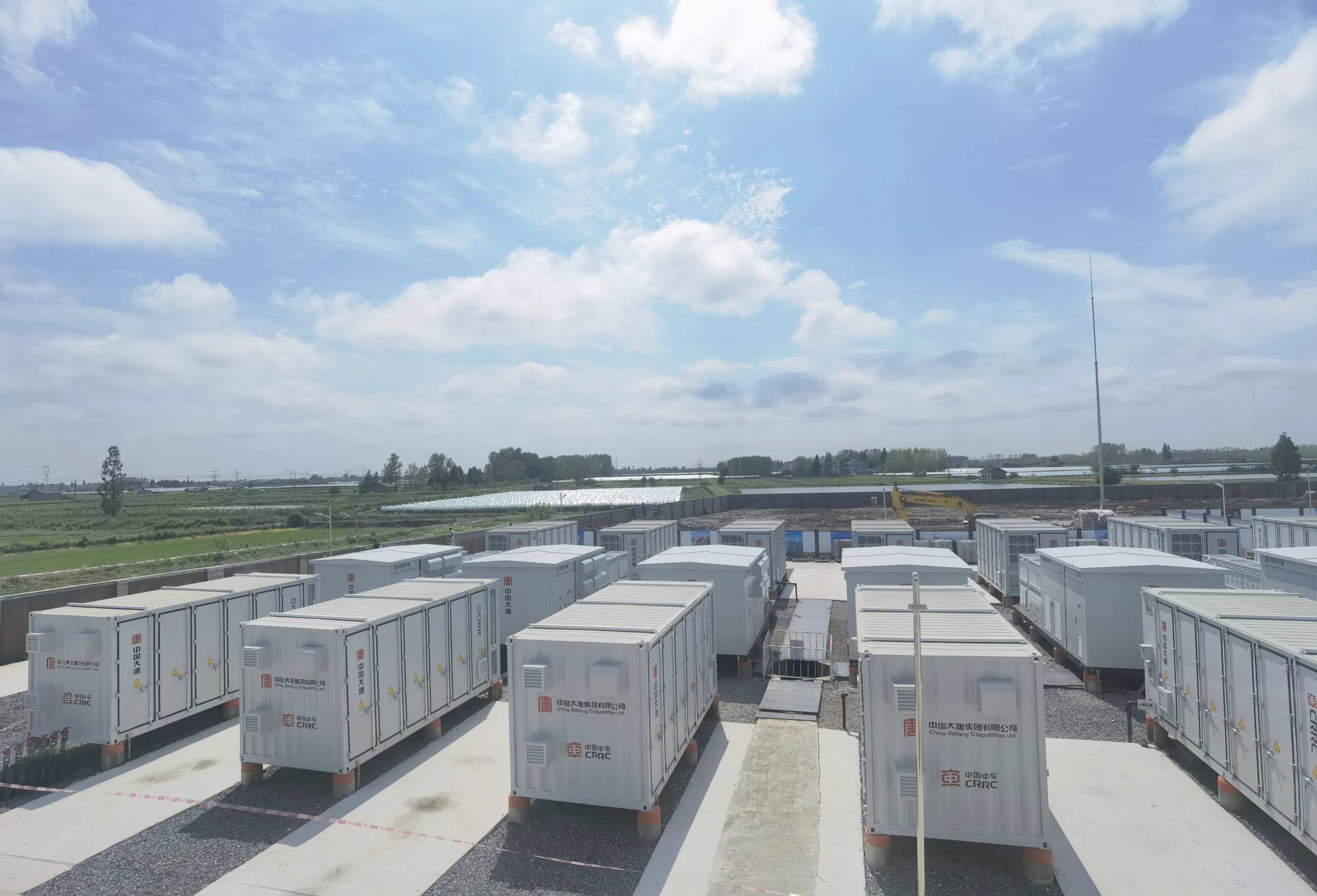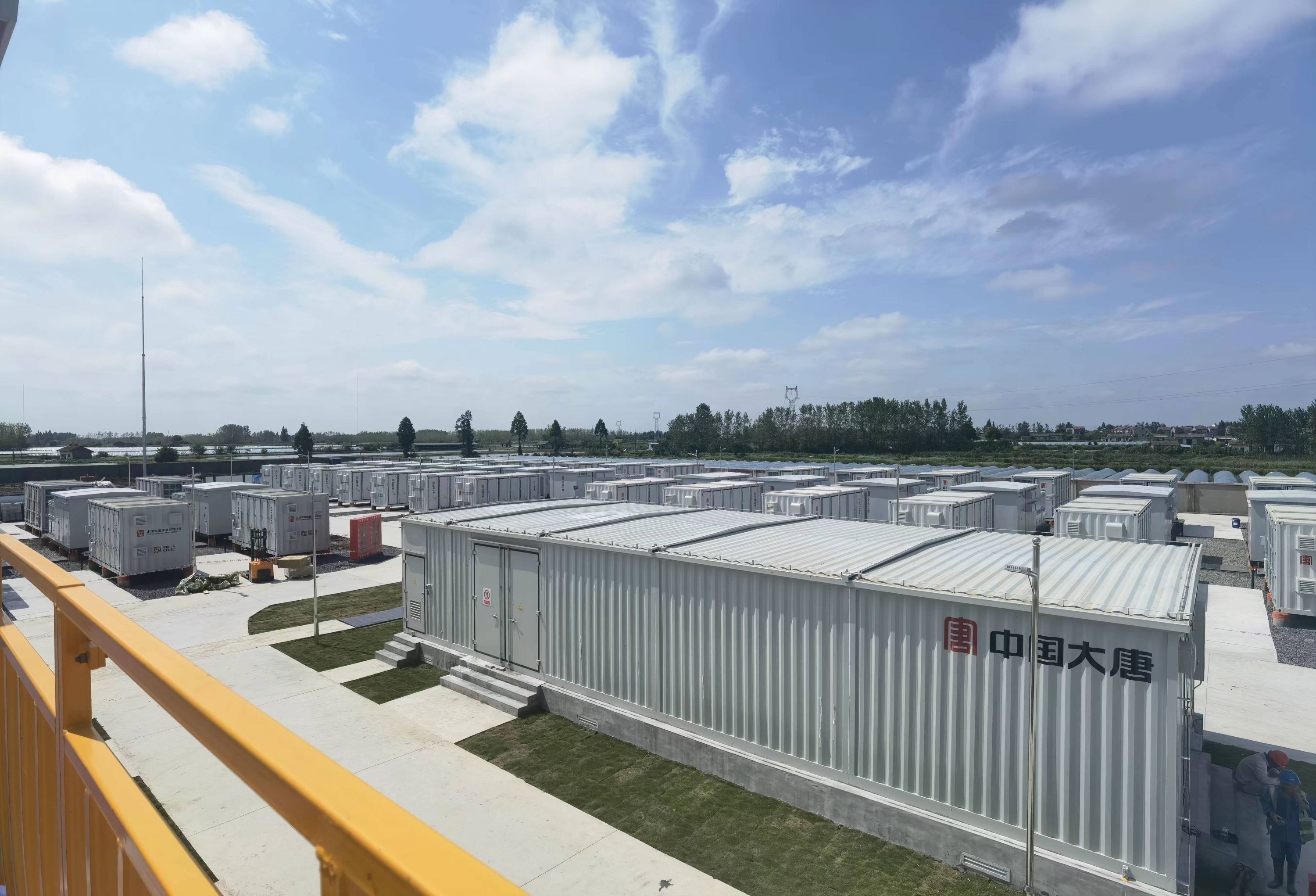 大唐湖北储能电站项目位于潜江市城郊,宽阔平整的场地上,63个长方形箱体设备整齐排列,项目如同一套庞大且结构严密的巨型电池组。