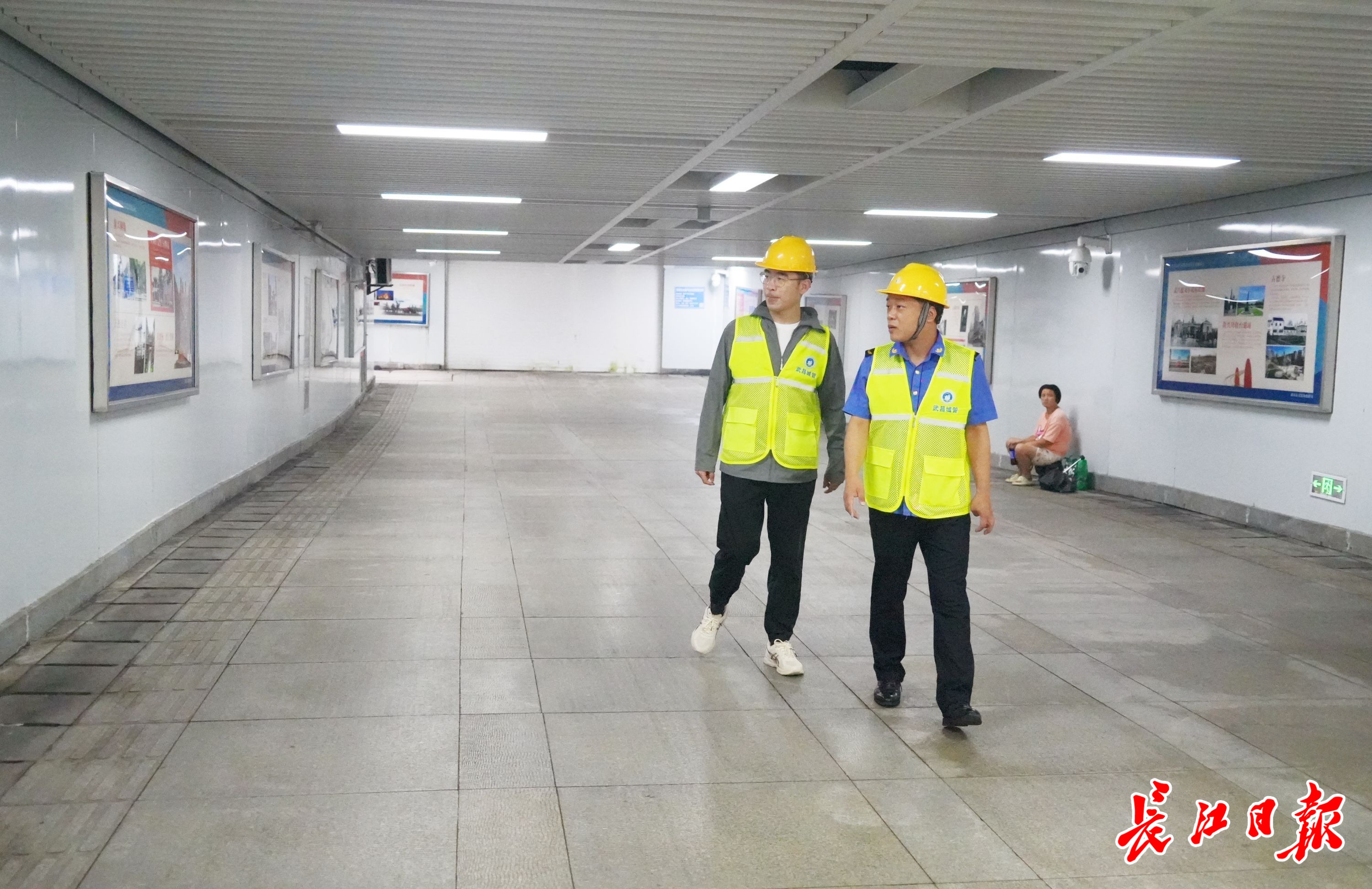 龚颖和同事在首义广场地下通道日常巡查。 记者何晓刚 摄