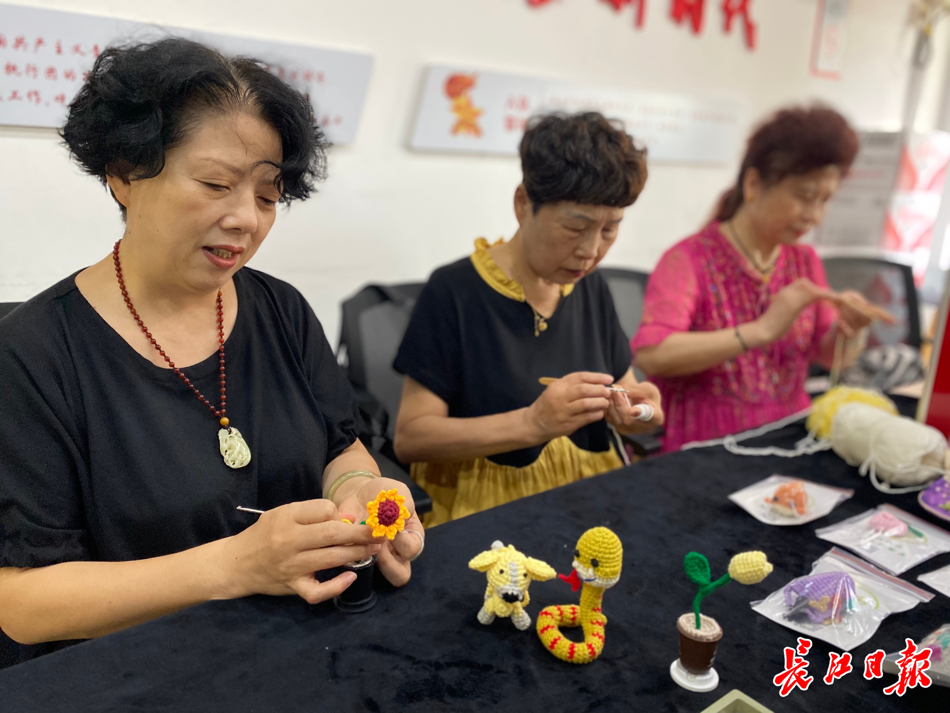 今年夏天,桂香编织社的成员当起了老师,编织社活动室全天开放,并组织手工课程随时“收徒弟”,居民编织的摆件摆满了展示台。手工达人陈桂香告诉记者,希望通过开设课程,吸引更多居民参与进来,“能为街坊们服务,多了很多乐趣”。