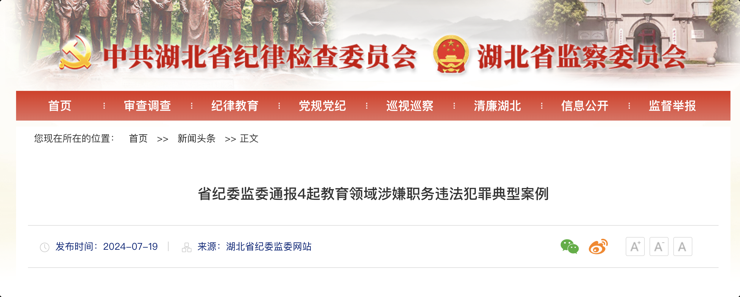 教育领域不正之风和腐败问题,严重侵害群众切身利益,影响教育强省、科教兴省建设进程。近年来,全省各级纪检监察机关紧盯教育领域以权谋私、插手干预、设租寻租等腐败问题,严肃查处了一批违纪违法案件。7月19日,省纪委监委通报其中4起涉嫌职务违法犯罪典型案例。