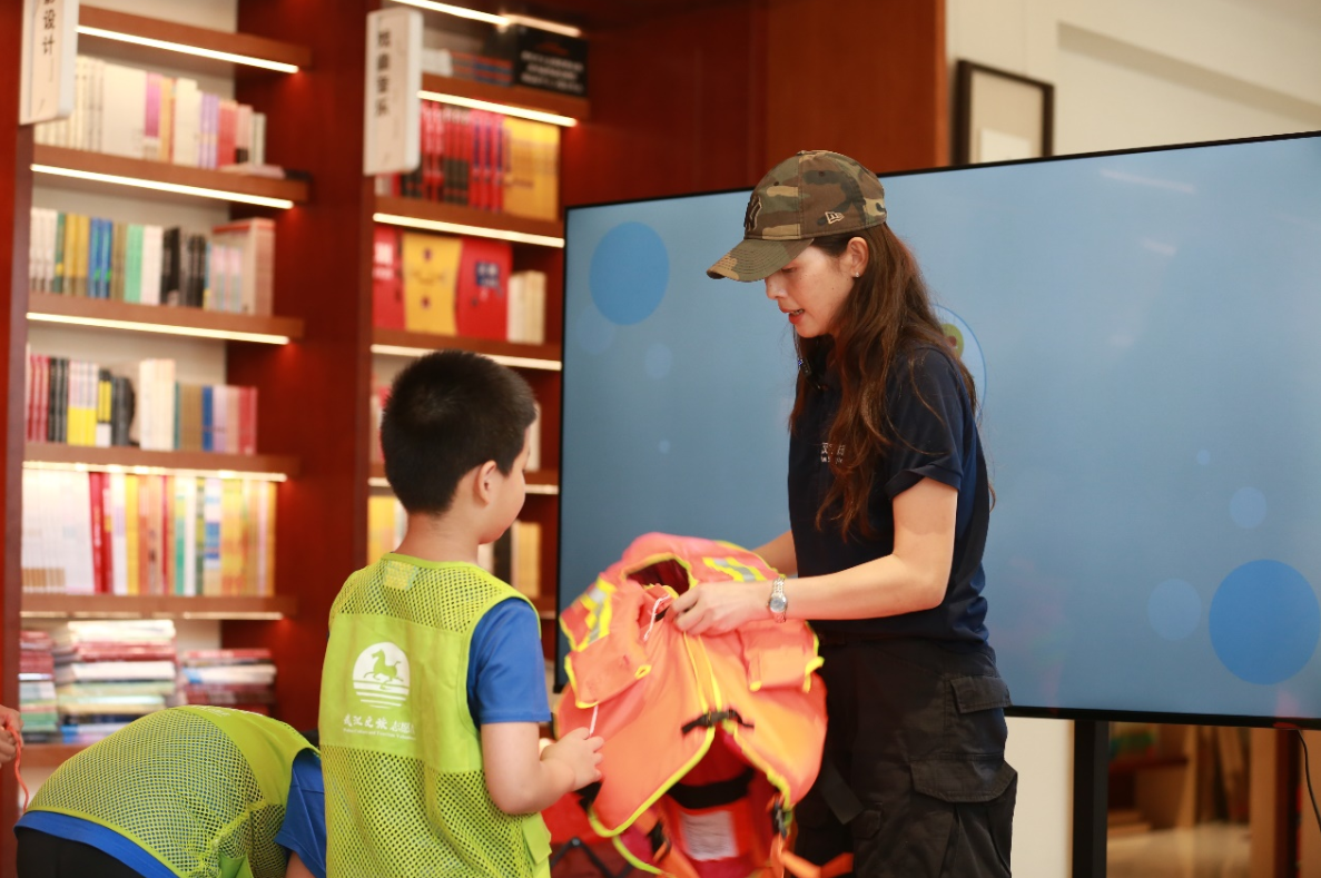 长江日报大武汉客户端7月19日讯(记者黄丽娟 通讯员武旅信)每年暑假,既是孩子玩得快乐的时候,也是各种危险易发高发期。眼下正值武汉主汛期,许多小朋友喜欢在江边戏水或游泳解暑,存在一定的溺水安全隐患。为了提高小朋友们的防溺水意识和自救能力,武汉文旅志愿者联合江岸区应急管理局宝捷救援队,在武汉中心书城开展暑期安全小课堂活动,加强防溺水安全宣传。