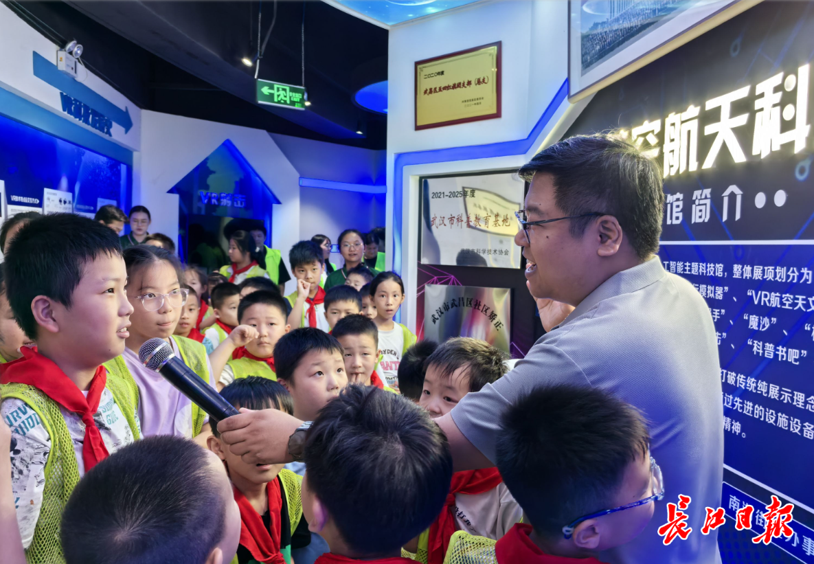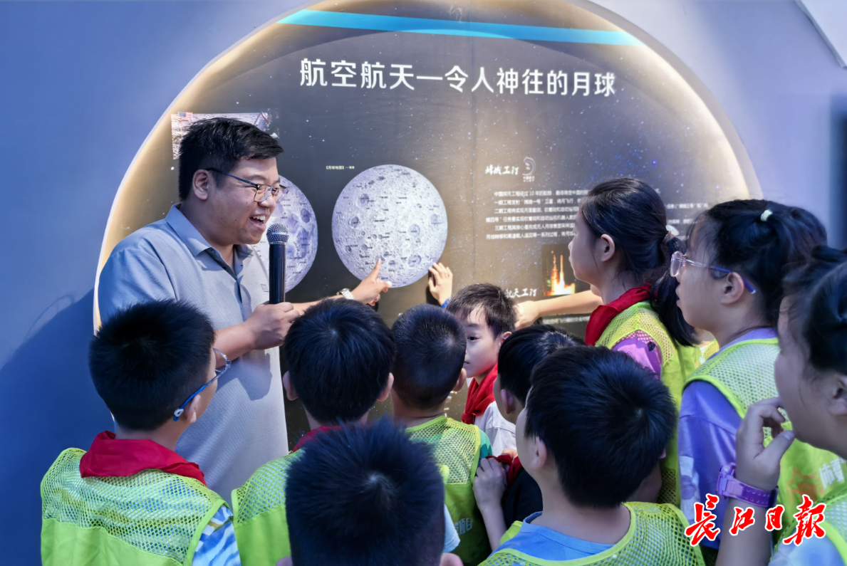 当天,谢颖奇为孩子们带来了航空航天科技课。30多名小朋友在谢老师的带领下参观南湖科技馆。科技馆里有各种航空器模型,还有中国航空航天的历史介绍。谢颖奇对孩子们说:“南湖机场始建于1936年,这里曾是湖北省最大的民用航空港。1995年4月15日,南湖机场正式退休,武汉天河机场投入营运。”科技知识与南湖的历史相结合,孩子们听得津津有味。