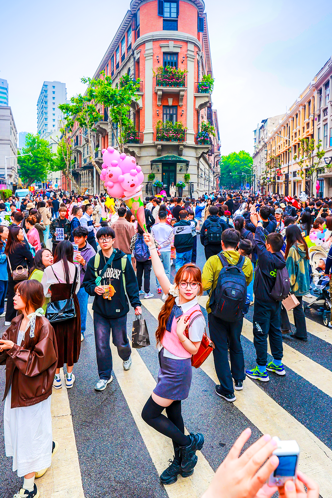 在詹子怡的相机里,有巴公房子前放飞的气球、梧桐树荫下的小推车上堆满的莲蓬、黎黄陂路上喝咖啡的年轻人、汉口江滩边的老房子,“近距离地接触武汉的人和生活,是City Walk最吸引我的地方”。