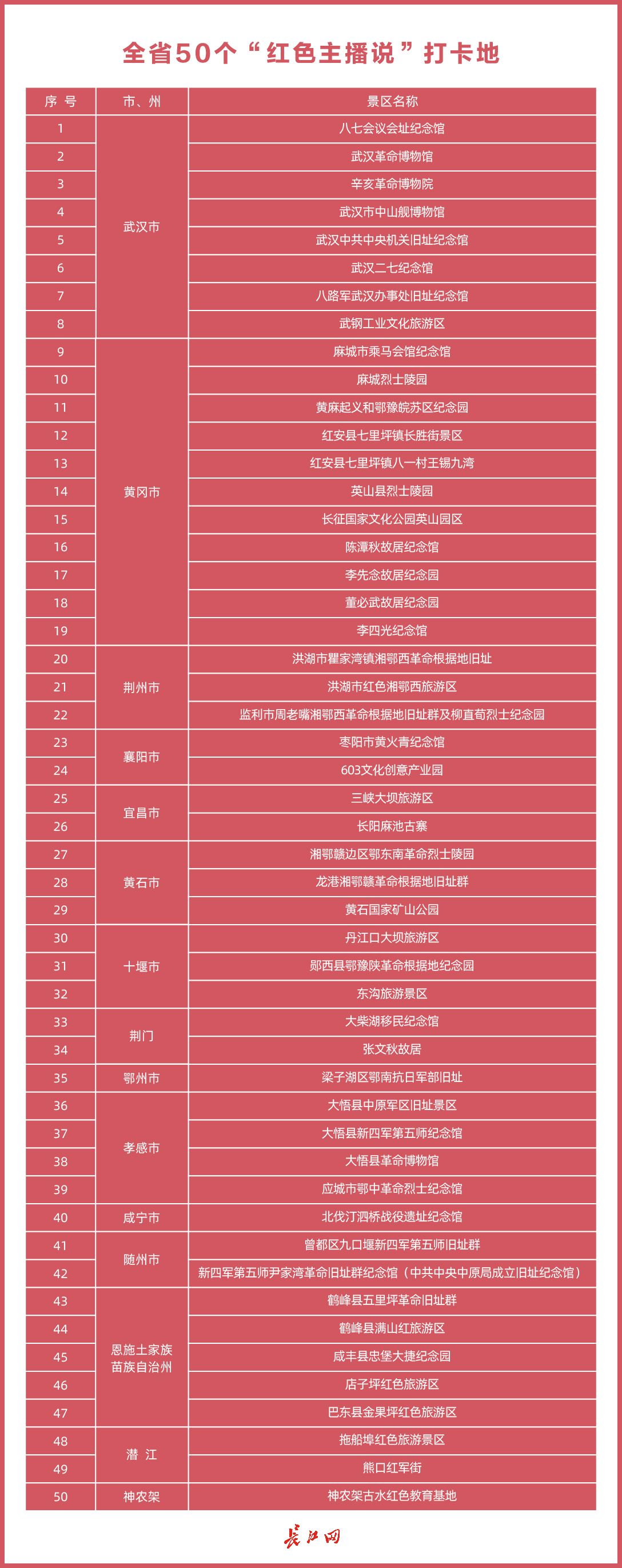 “我要找到你·红色主播说”湖北红色旅游主题宣传活动由长江网承办,将持续到今年11月,活动内容包括《我要找到你》红色主题 MV发布和传唱、“我要找到你·红色主播说”系列直播和原创短视频征集、全省红色旅游经典景区和红色旅游精品线路推介、最受欢迎“红色主播说”短视频遴选发布等。