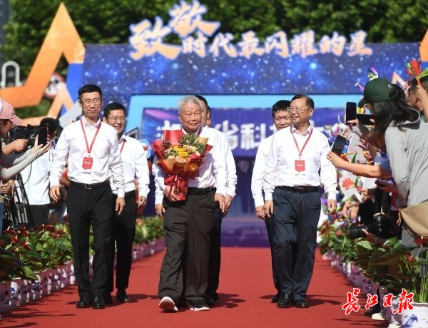 7月26日上午,洪山礼堂外的百米红毯上,87岁的张祖勋院士手捧鲜花,步履铿锵踏上红毯。这位在教育战线工作了64年的摄影测量与遥感科技工作者表示,将荣获2023年度湖北省科学技术突出贡献奖所得的200万元奖金再次捐作“教书育人奖”。他说:“科学家是靠人民教师教出来的。”