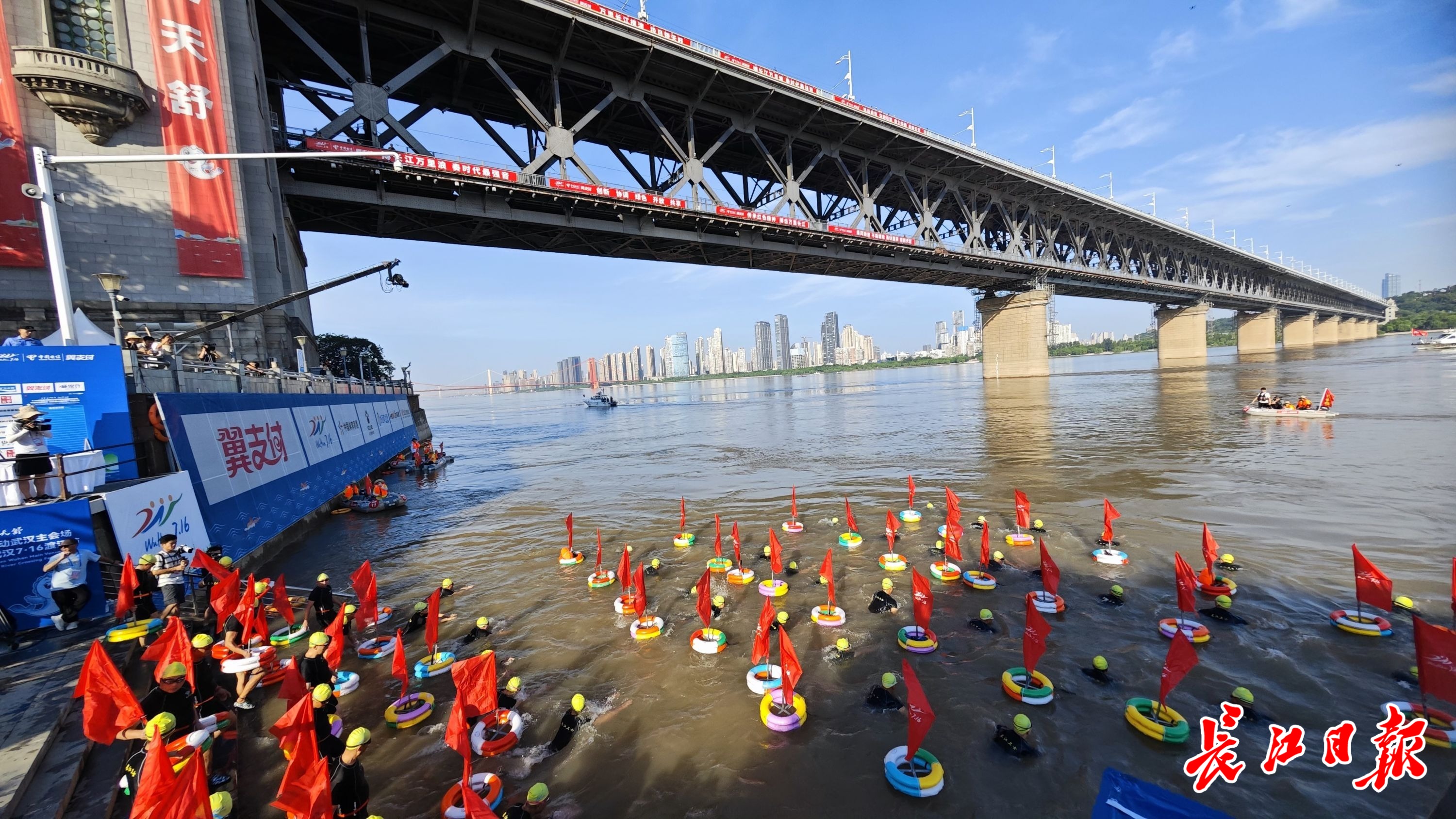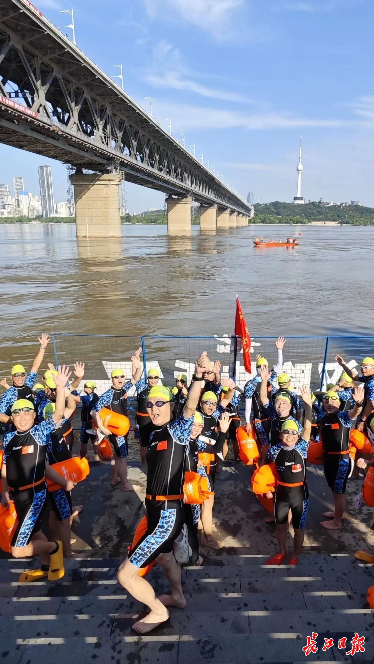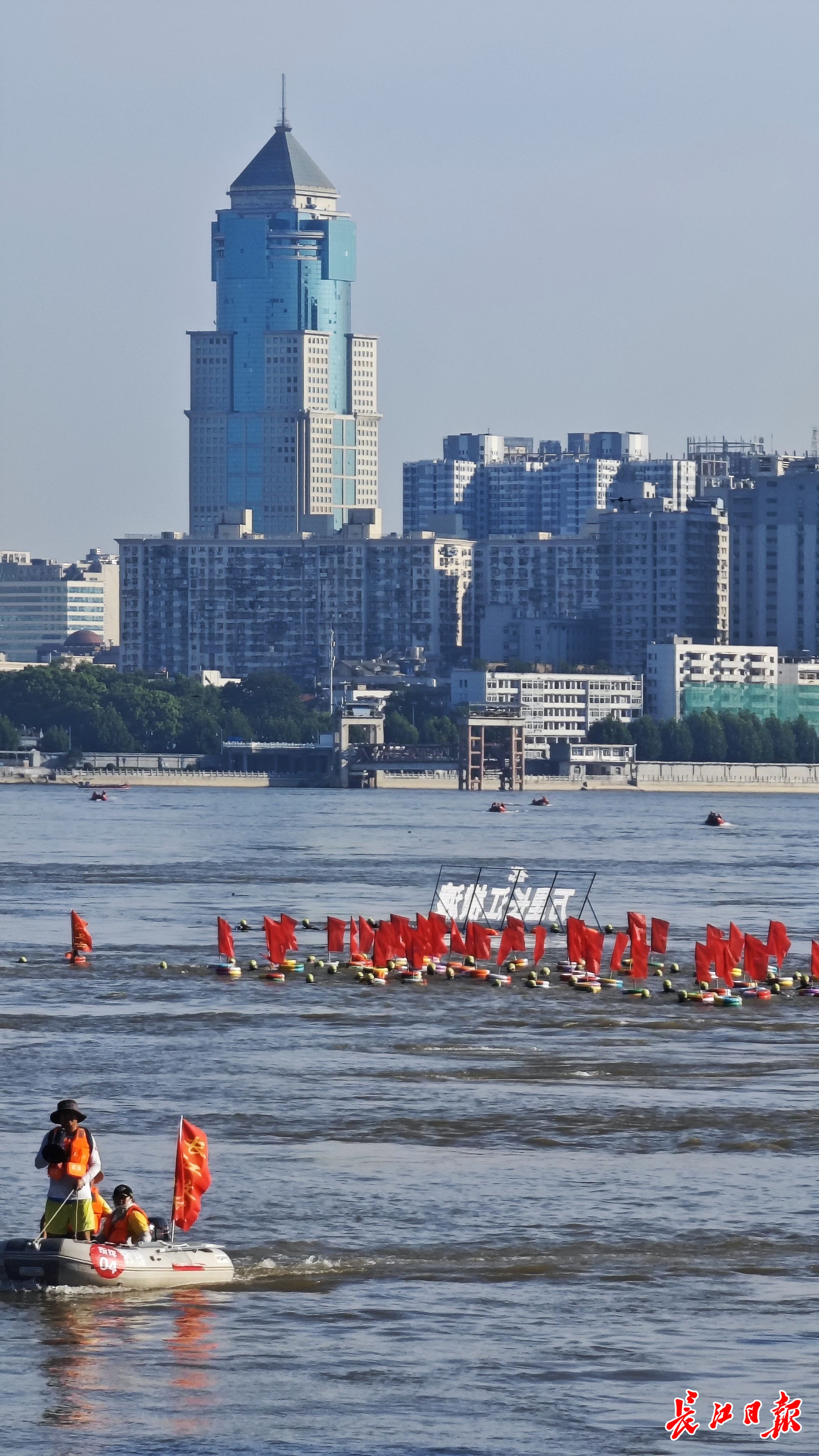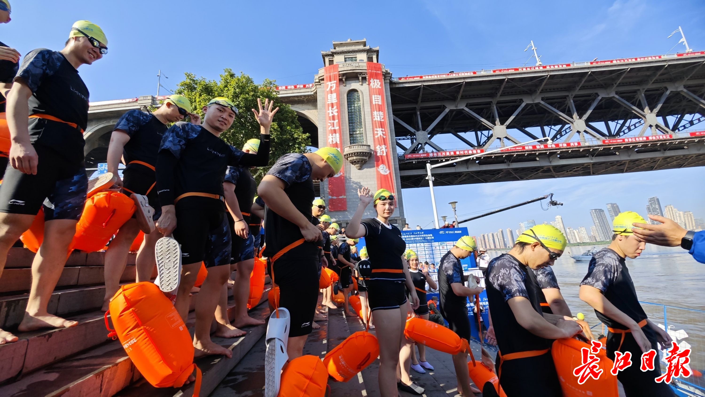 8月8日,第49届武汉7·16渡江节,群众方阵开始下水。