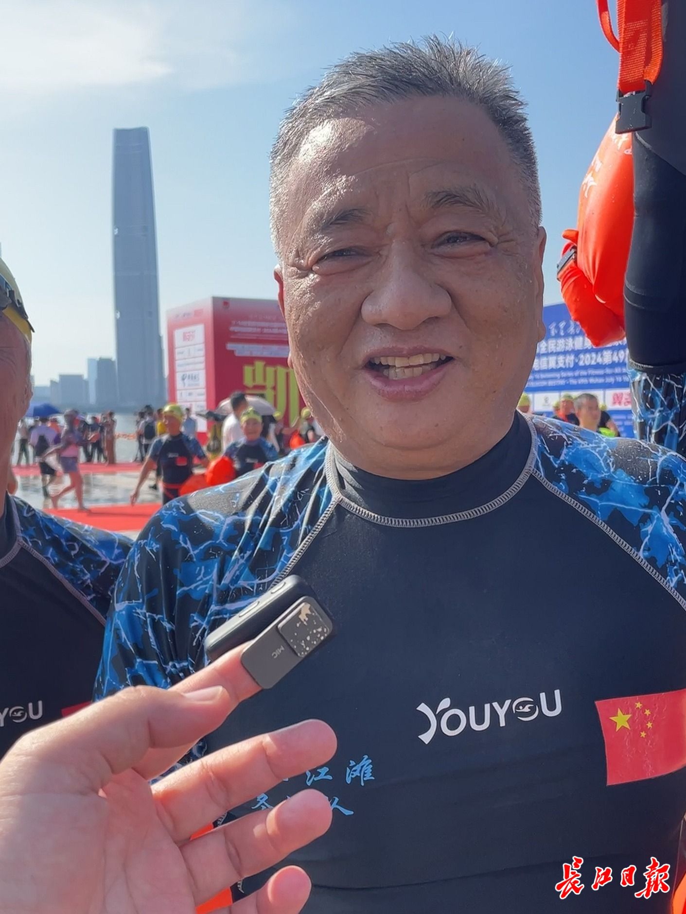 钮新强院士说,今天渡江,自己的状态非常好,江水条件也挺好。今年6月份开始,他就开始为渡江做训练准备,确保渡江成功。武汉7·16渡江节是武汉市的一张名片,有国际影响力,希望这张名片更加靓丽,也希望武汉市的未来发展越来越好。
