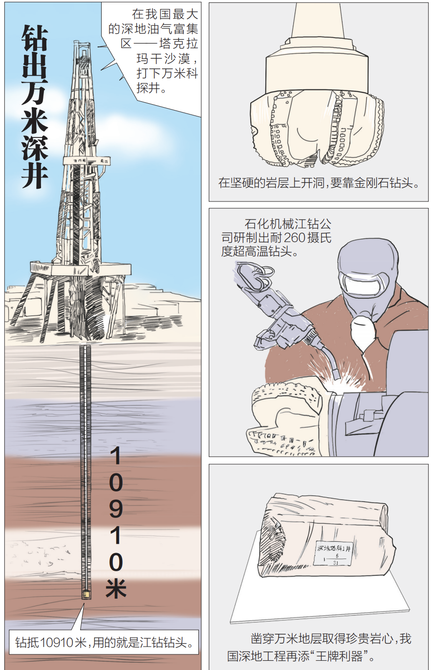 上月,我国首口超万米科探井——深地塔科1井成功在地下10910米完钻,抵达这一深度,用的就是石化机械江钻公司的“耐260摄氏度超高温”石油钻头。