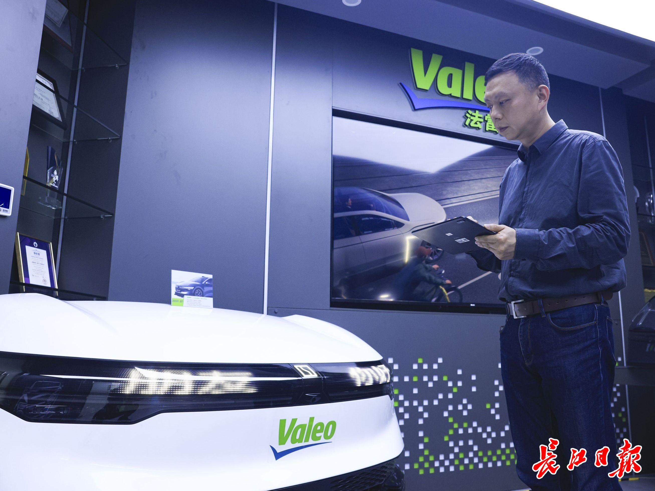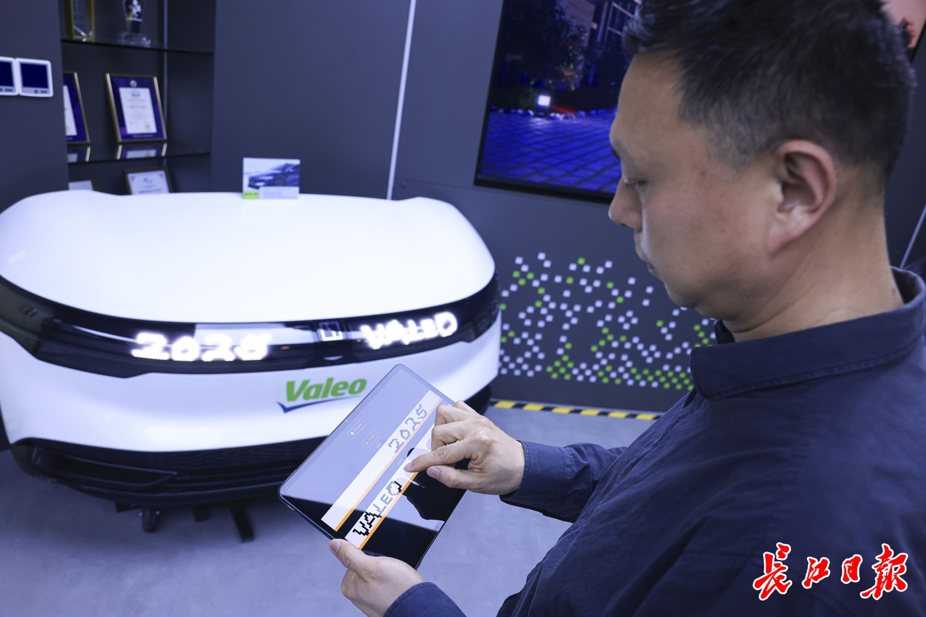 法雷奥照明武汉工厂研发经理白昊宇演示智能车灯的自定义显示。长江日报记者 胡冬冬 摄