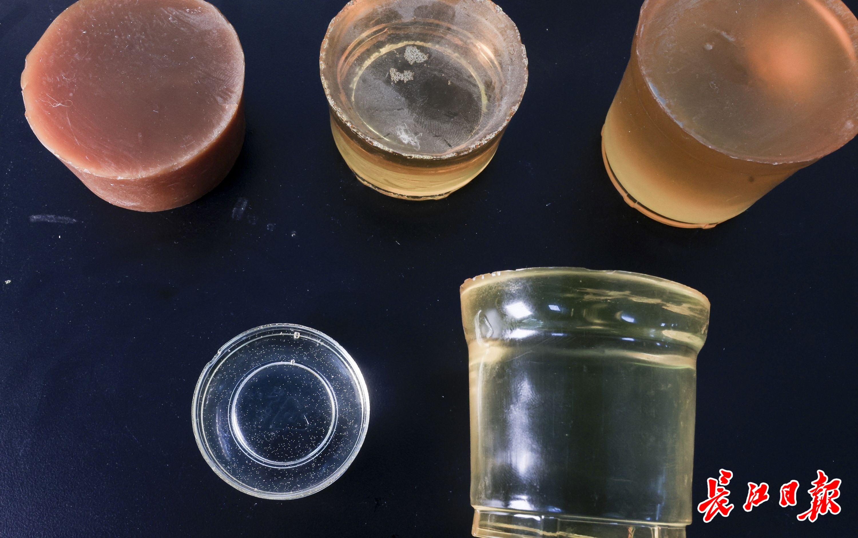 调制好的“隧道胶水”刚性环氧树脂,凝固后质地坚硬,呈透明状。记者 胡冬冬 摄