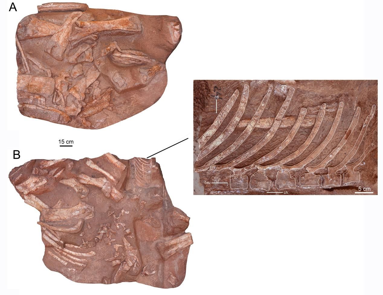据悉,赣州盆地莲荷组的白垩纪晚期地层为此次研究提供了珍贵的化石材料。该地层以河流及冲积沉积环境为主,是我国重要的恐龙化石富集区之一。研究团队对一批保存于砖红色砂岩中的骨骼化石进行了系统整理与修复,这批化石包含大量头骨及头后骨骼,虽大多不关联,但经形态对比研究,确认属于同一类群,且至少代表两个不同个体。