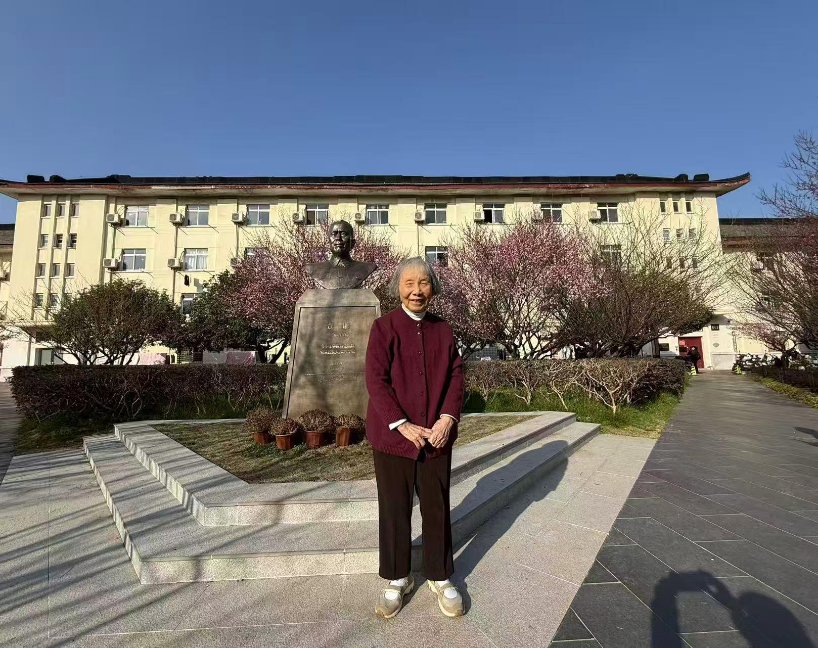 2026年1月13日,是徐辉碧93岁生日,她在查谦塑像前留影。