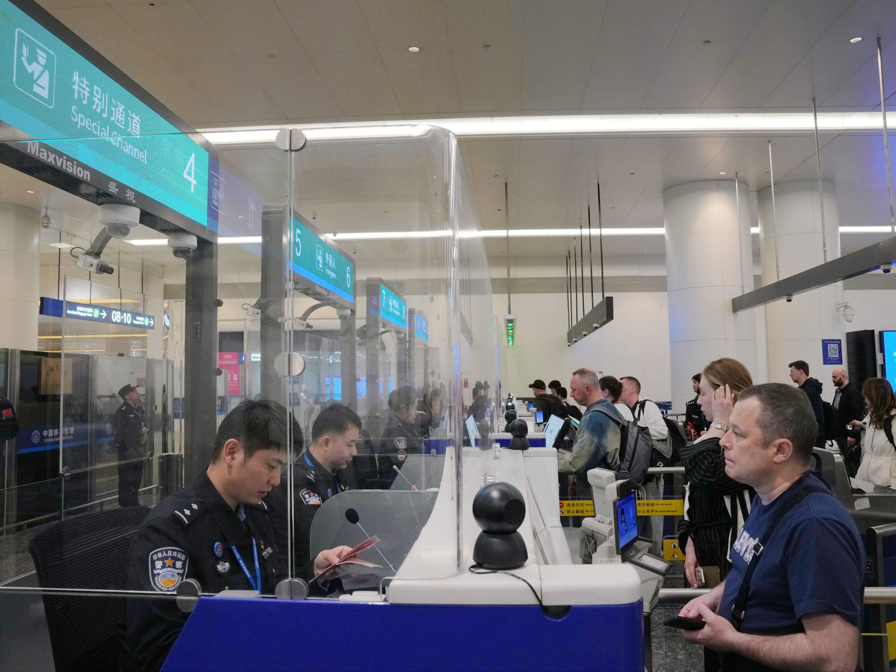 外籍旅客在武汉天河机场口岸办理入境通关手续。通讯员王璐颖 摄