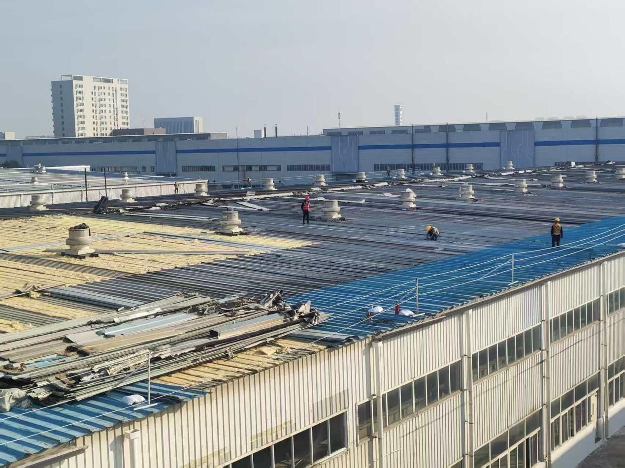 经开资产公司有关负责人介绍,项目累计更新屋面彩钢瓦约2万平方米,对钢结构全面加固,加装檩条3528根、斜支撑240根、天沟600米,大幅提升了厂房结构稳定性与承载能力。