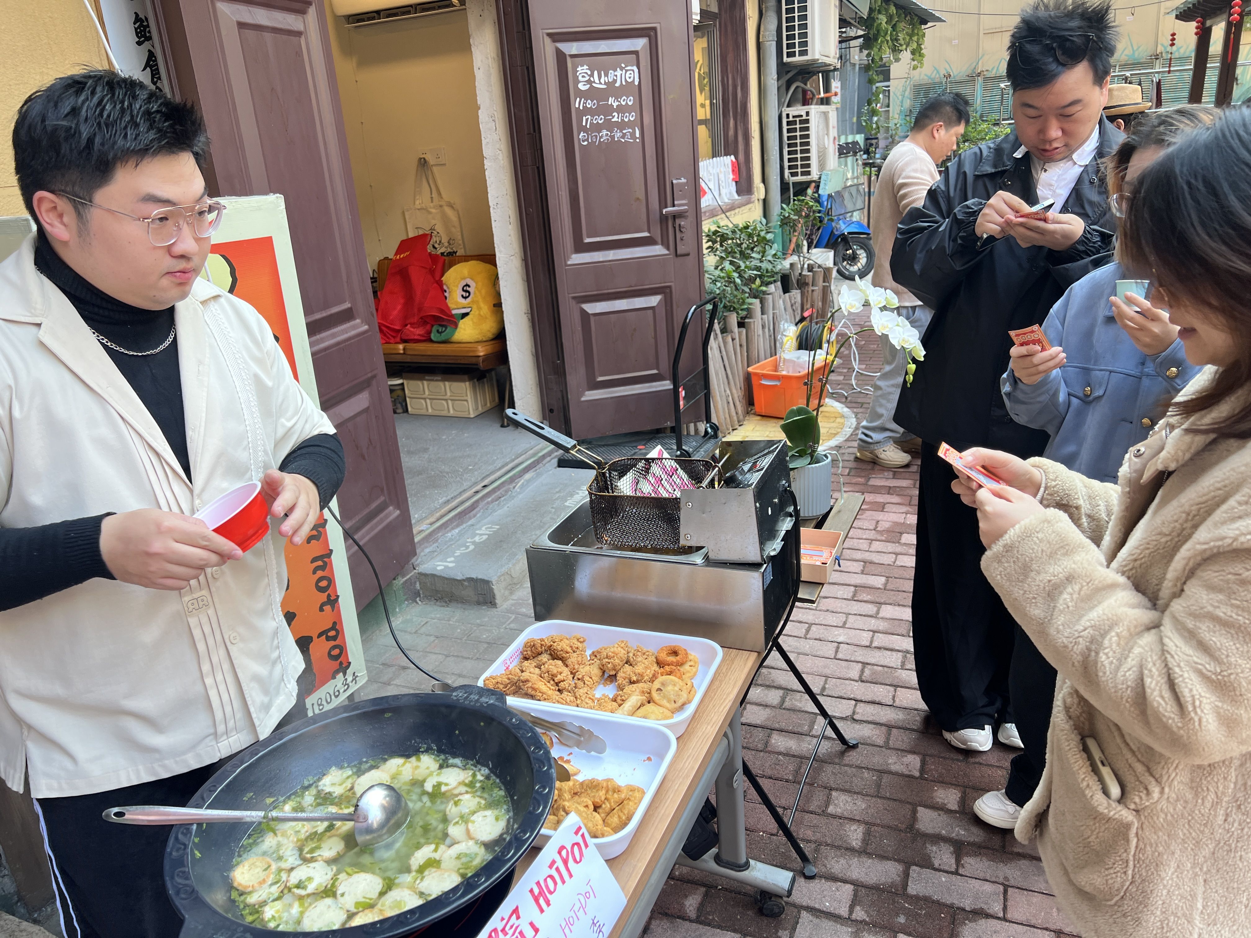 “开火锅店,就是希望社区里有一个能让全家老小、三五邻里轻松聚餐、放松交流的平价温暖空间。”韩羿飞说,光是清运垃圾、打扫清洁就花了整整一个月。当墙面终于露出原本的砖色,他想起自己小时候,这里曾是热闹的台球厅和录像厅,是整条街的“快乐中心”。“能不能把那份热闹找回来?”韩羿飞琢磨着。