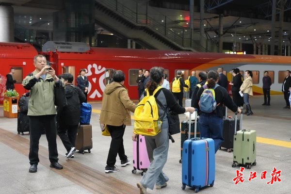 首批172名旅客开启了为期12天的云贵之旅,这是铁路武汉局集团有限公司武铁旅服传媒公司今年开出的首趟舒适型旅游专列。