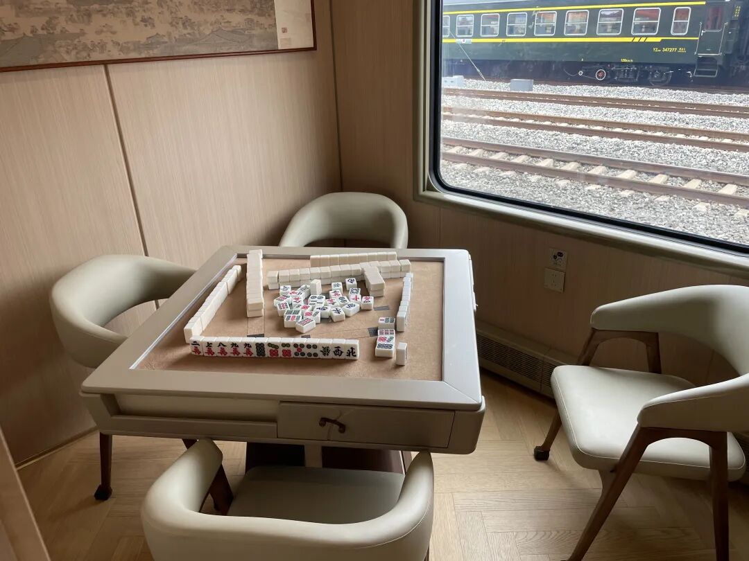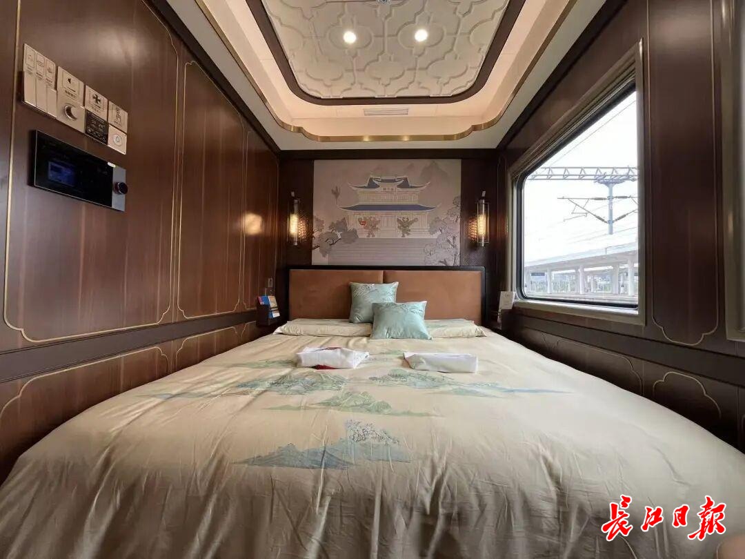 遇见美好科技文旅集团创始人张萌介绍,旅游专列非常重视细节和服务,专门加宽了床铺、安装SOS紧急呼叫按钮,同时全车配备Wi-Fi、智能交互屏、AI智能管家系统,增设品茗区、文化社交区、音乐表演区、棋牌间四大功能区域,提供丰富的社交与休闲选择。