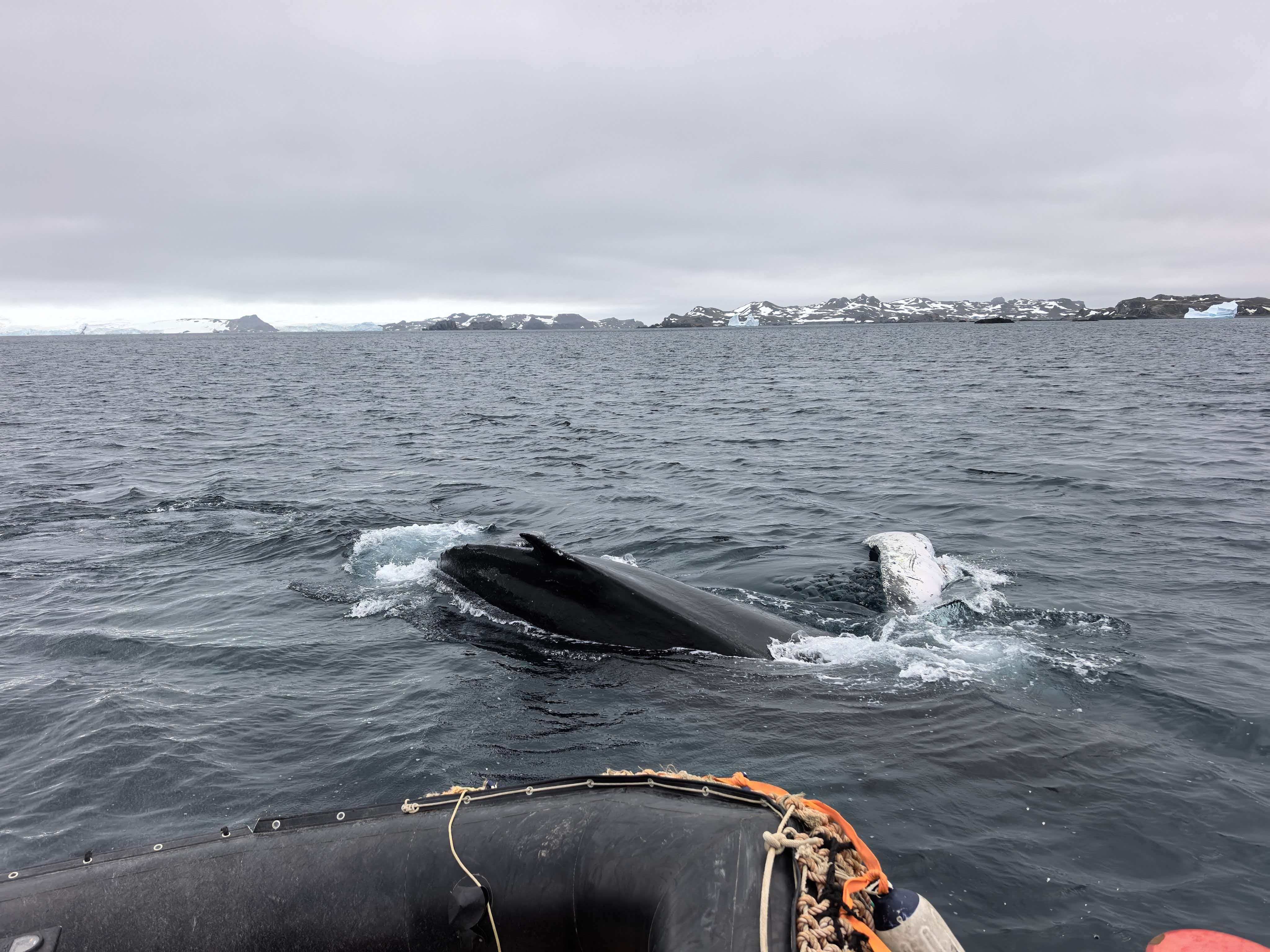 臧琳和庞小平教授、博士后刘明亮分别在长城站工作了一到两个月,主要负责长城站卫星导航定位性能测试与设备更新维护,以及冰雪环境下无人机飞行观测等任务。刘明亮回忆,在一次野外工作时,鲸鱼撞到了他们的橡皮艇。有的时候外出作业,就会突然起雾、降雨、降雪、大风。在这样的环境中,他们刻意减少进食和饮水,以降低生理需求,从而保证能更高效地完成任务。