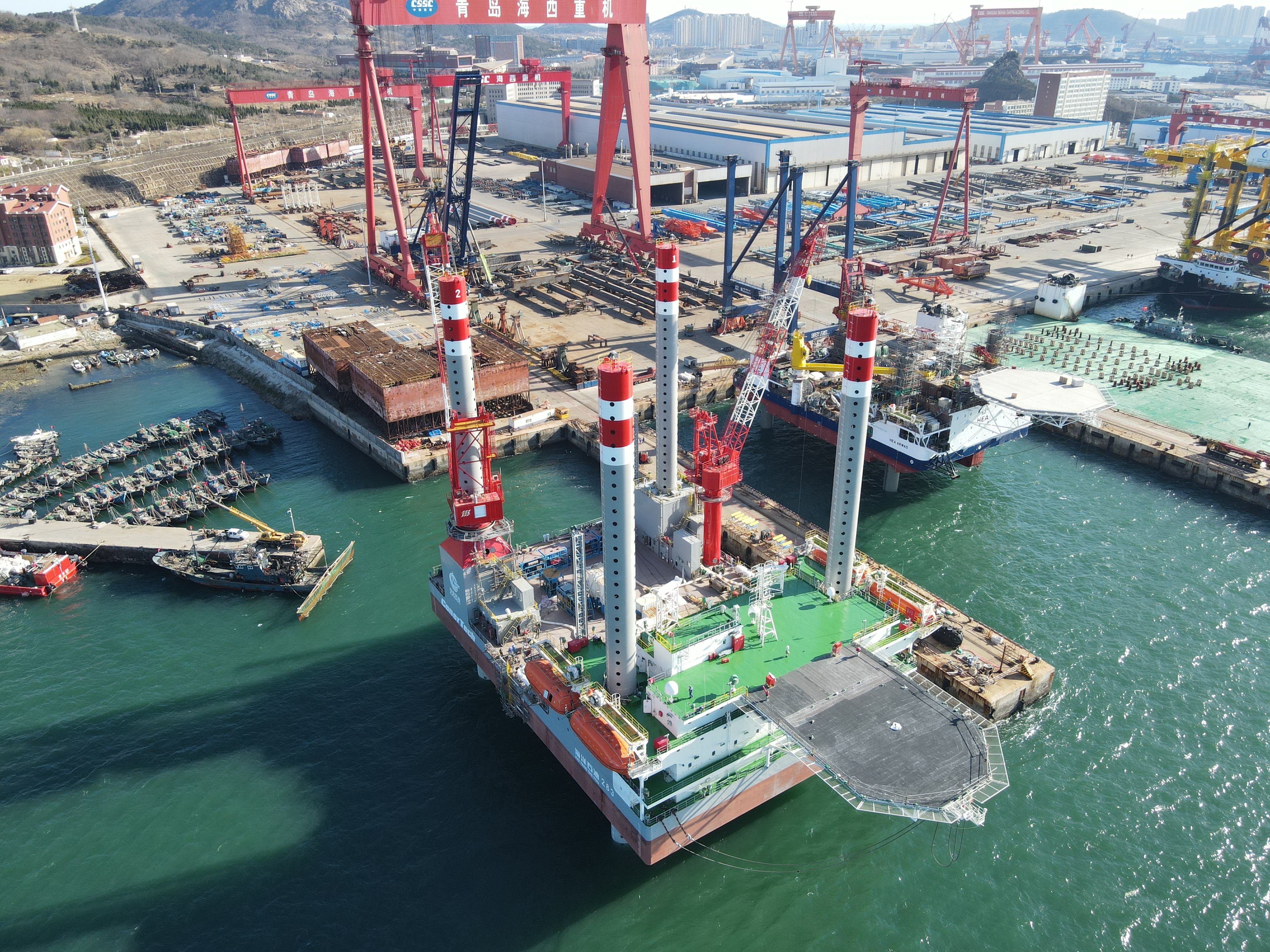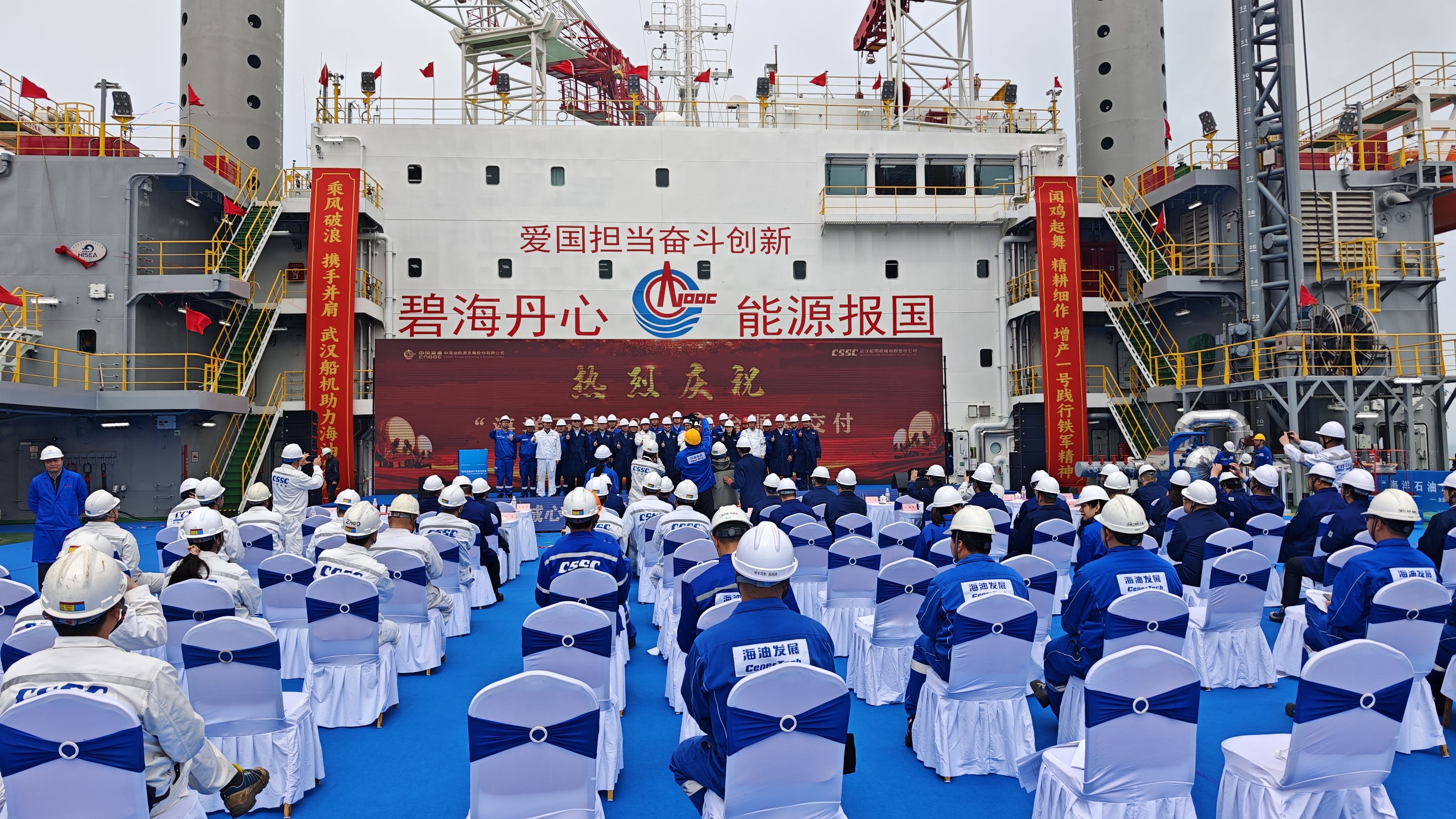 中船武汉船机技术中心总设计师赵彬介绍,平台自2025年4月正式开工,面对时间紧、精度高、挑战多的严峻考验,项目团队以“党建+项目”模式攻坚克难,仅历时12个月便高质量完成陆地建造与下水调试,创造了我国同类型平台建造的“加速度”。